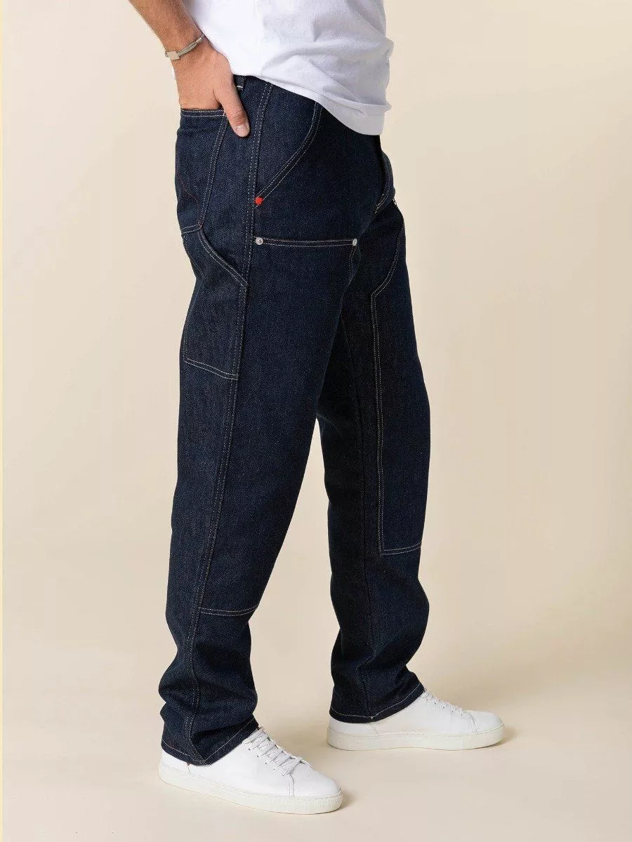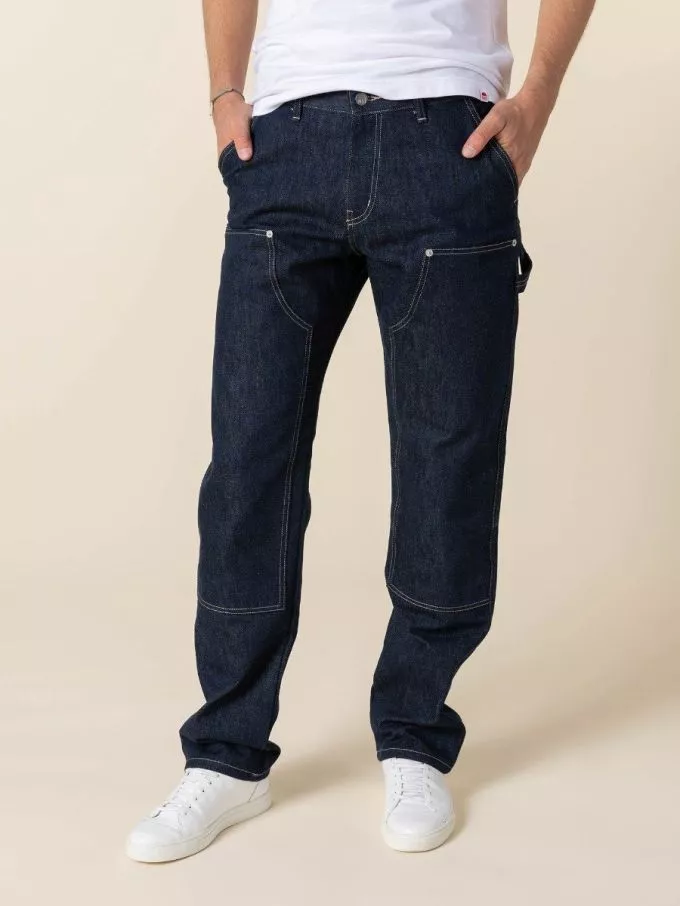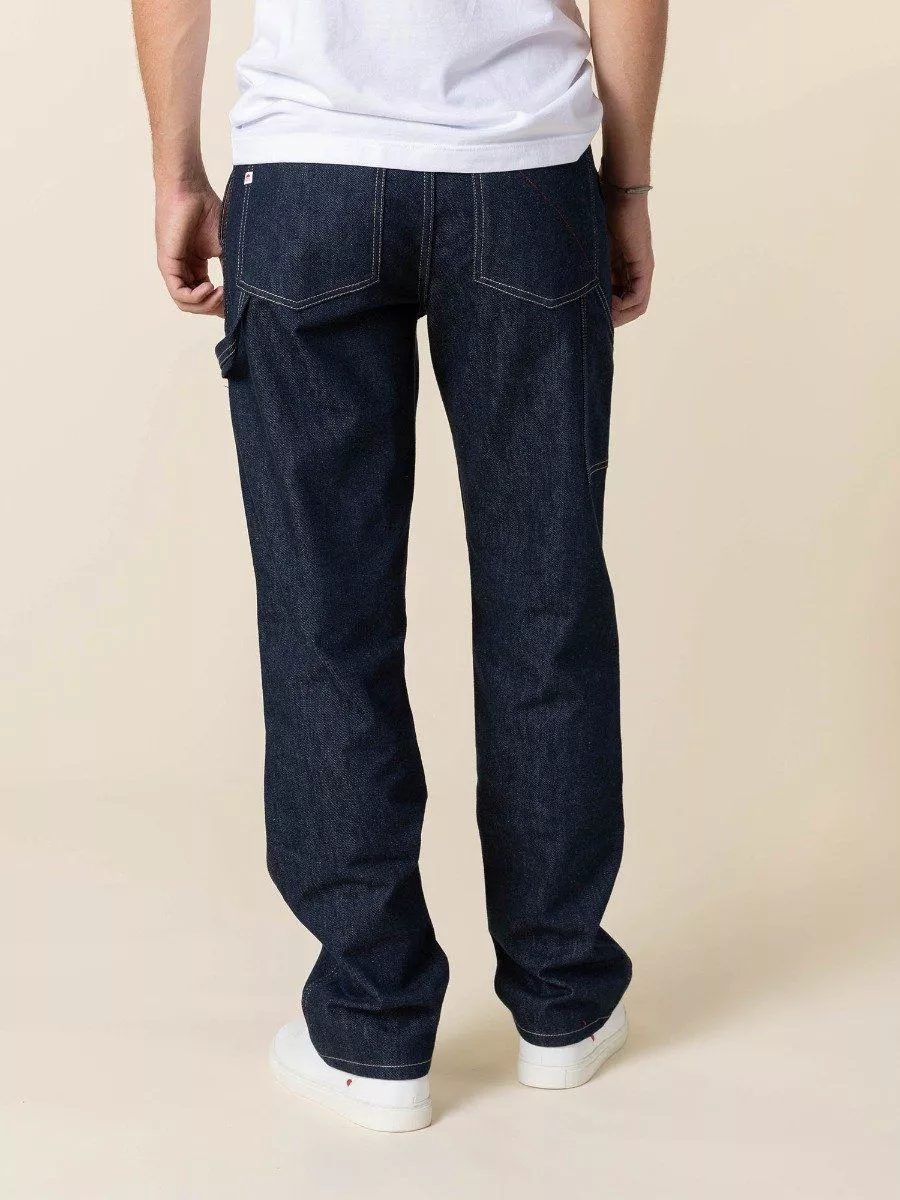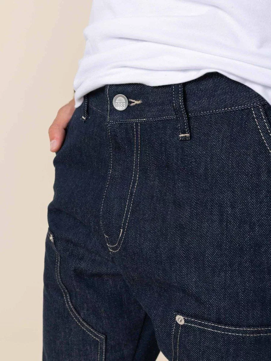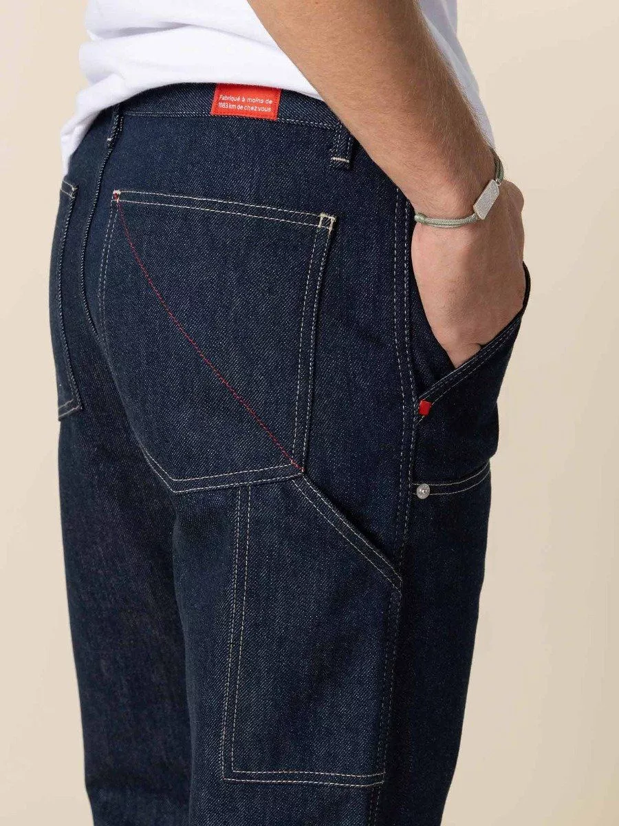 Jeans Cargo Bleu en coton bio Le 131N SuperDenim coton bio cardé bleu revisite le classique pantalon cargo en jean dans une version responsable et durable. Confectionné en coton bio tissé et teint en France, ce cargo denim associe style fonctionnel et confort quotidien.