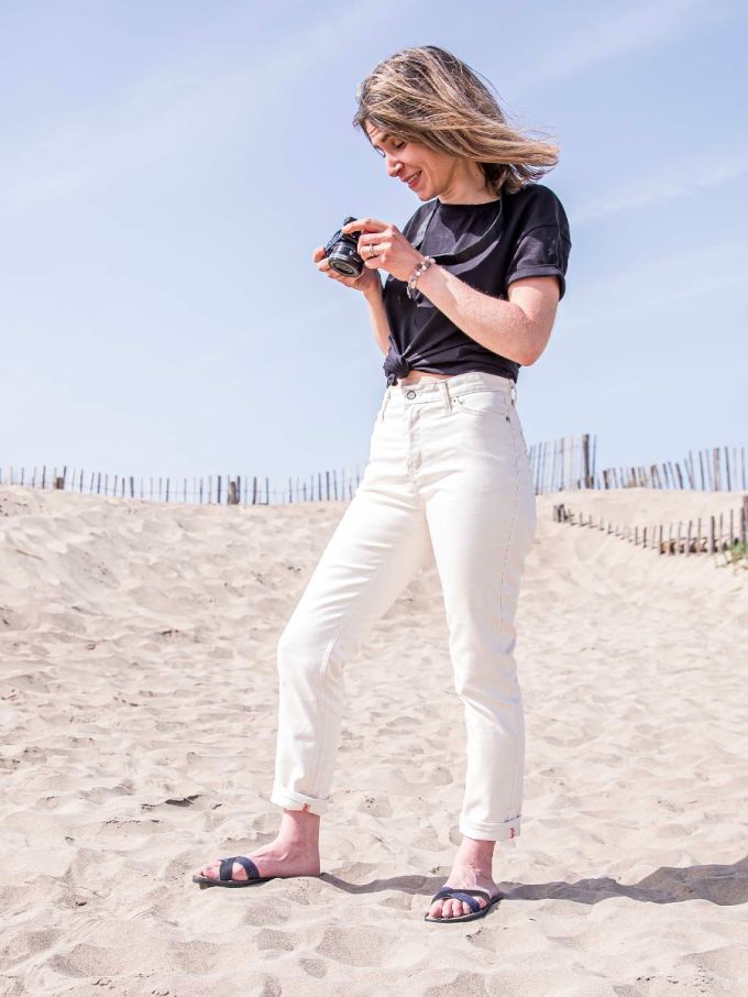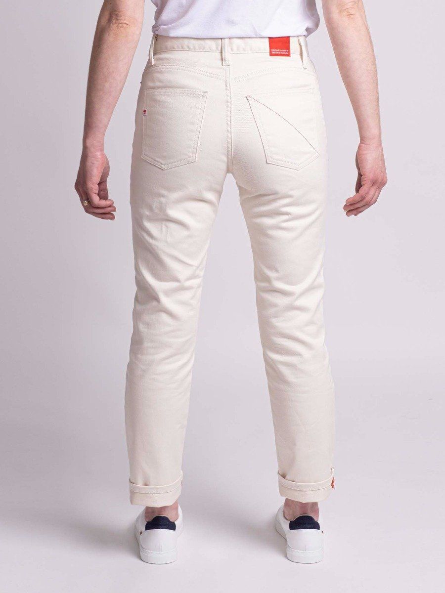 UN JEANS COULEUR COTON L’indémodable coupe droite, notre 201H se décline dans un nouveau coloris écru pour cet été. Avec sa taille haute et son tissu léger DenimOriginal, il marque votre taille et dessine votre silhouette.