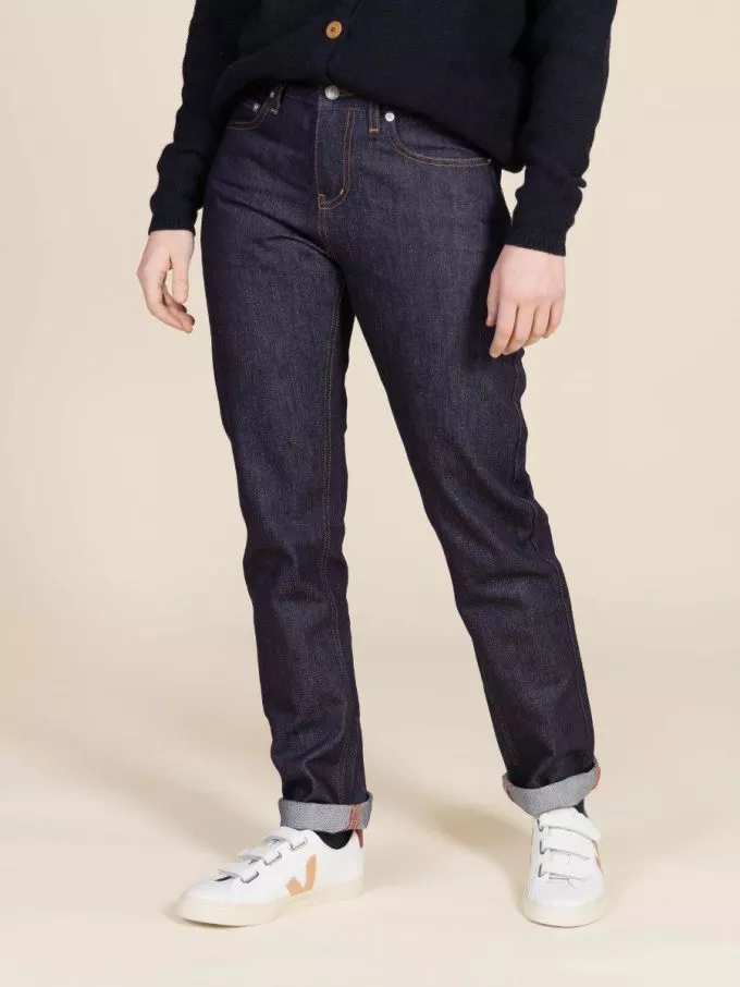 1083 - JEANS DROIT 201N  100 % coton bio superdenim indigo brut Femme
