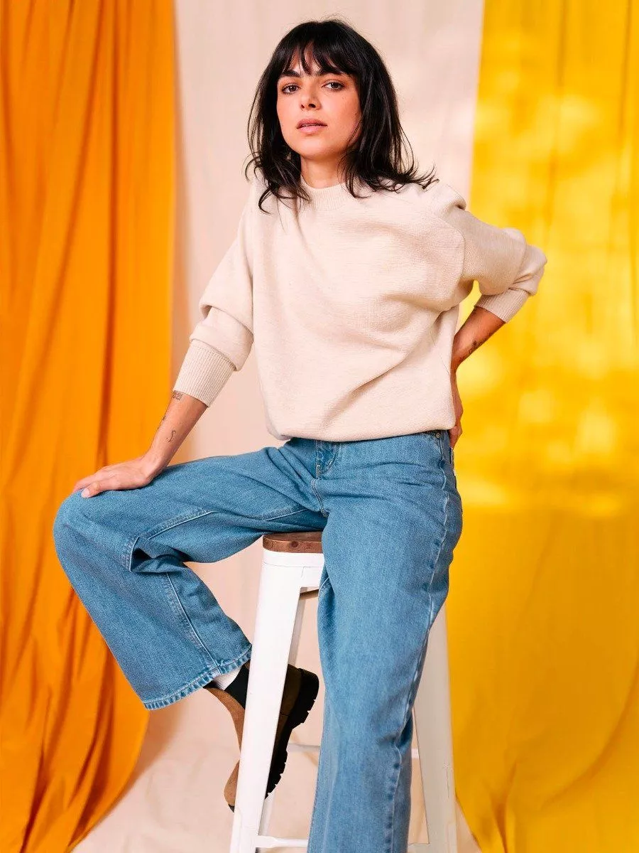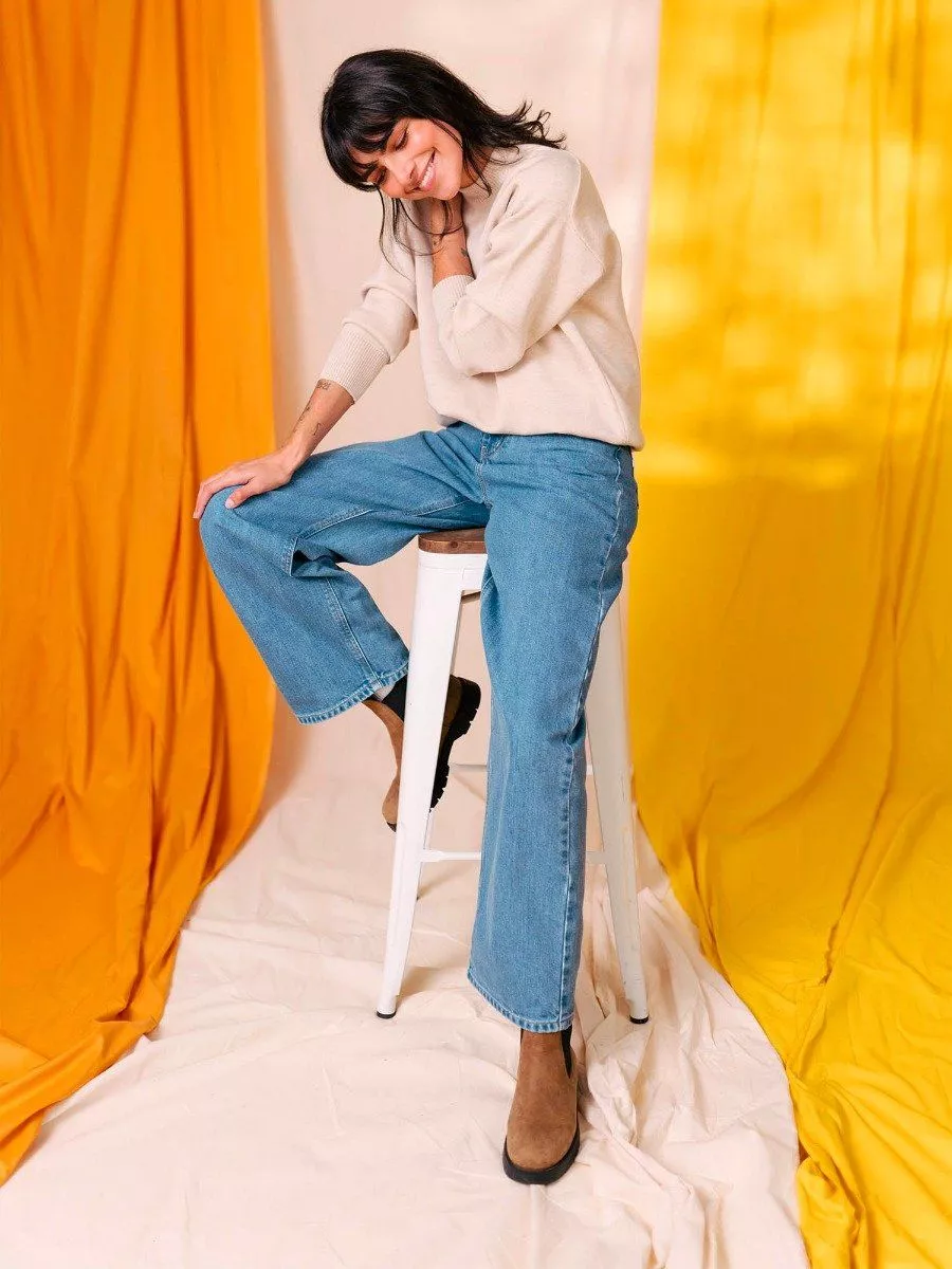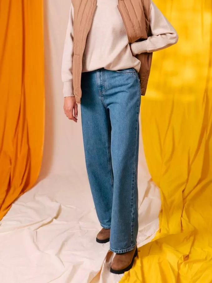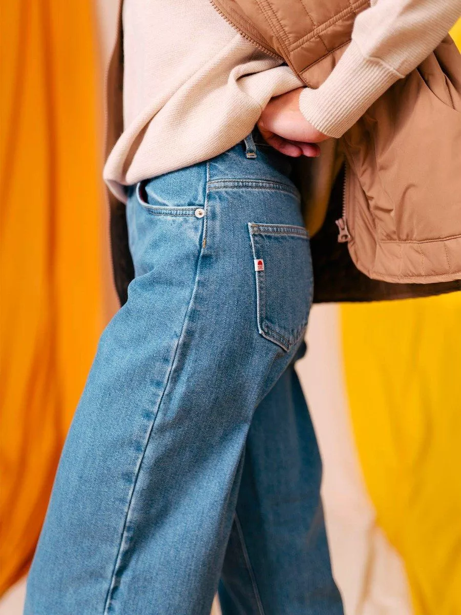 LE 206H DELAVE FEMME Un jeans large pour femme en denim indigo délavé clair, on l’a fait ! Le modèle 206H se distingue par sa coupe flare, moderne et confortable. Il est confectionné dans un SuperDenim cardé épais 100 % coton bio, sans élasthanne, pour un denim authentique avec une belle tenue dans le temps.