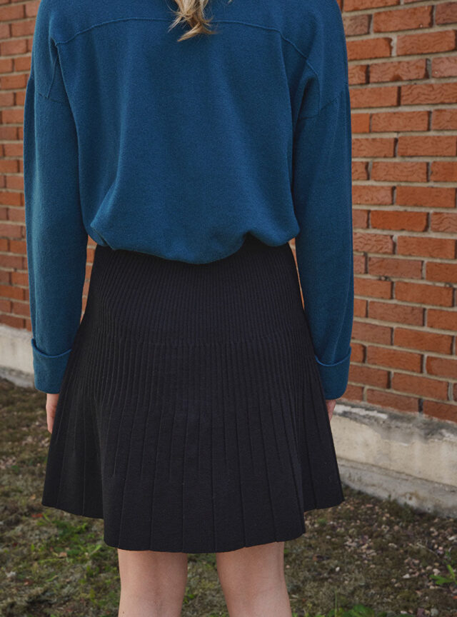 La jupe Annaëlle séduit par son volume léger et son tombé dansant. Tricotée en maille jersey avec un effet plissé, elle offre une silhouette courte et féminine, facile à porter au quotidien. Sa ceinture rapportée élastiquée noire assure un maintien confortable et moderne. Une pièce chic et dynamique qui s’adapte à tous les styles.
