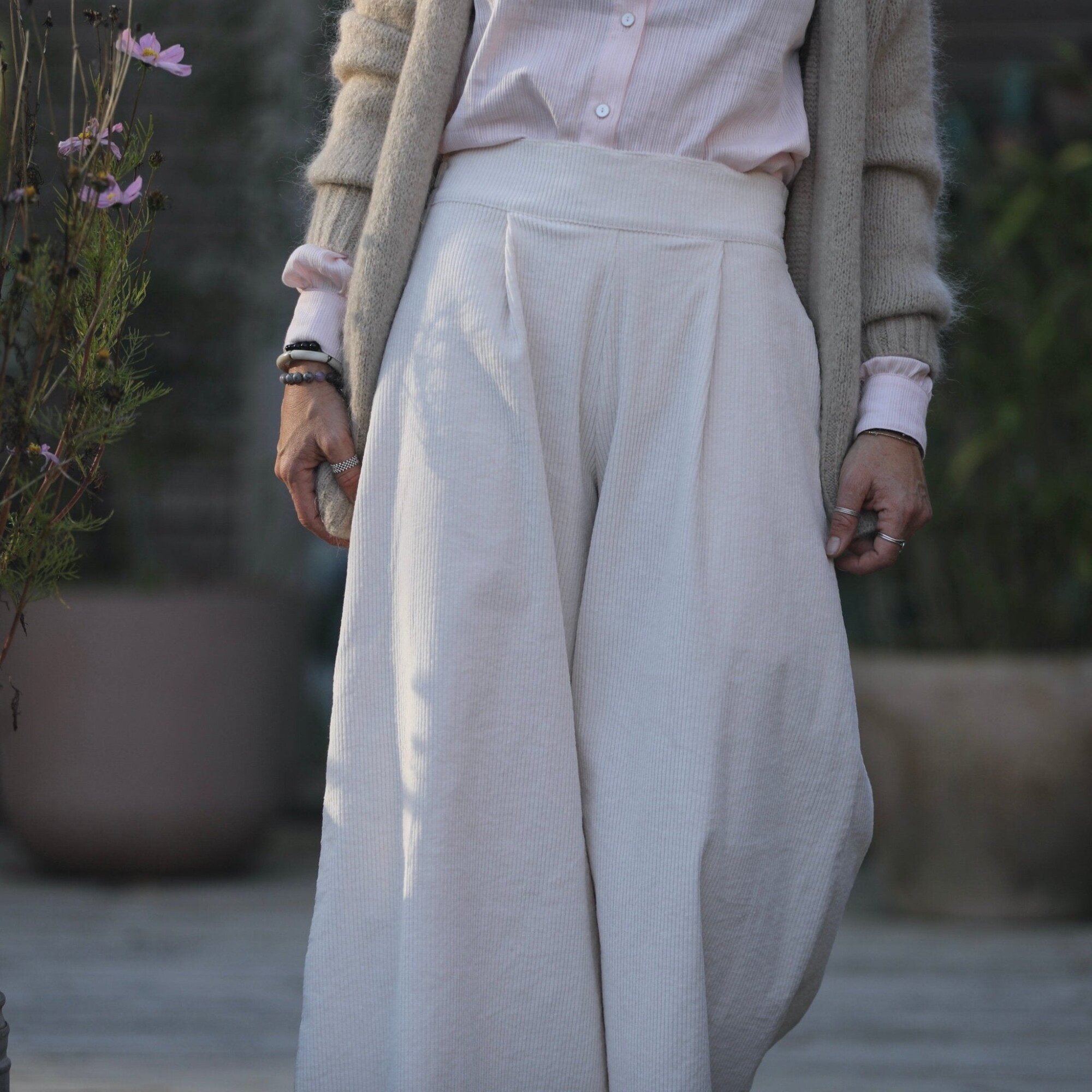 Arielle est une magnifique jupe-culotte, embellie de jolis plis à l'avant. La ceinture élastiquée à l'arrière offre un confort optimal.