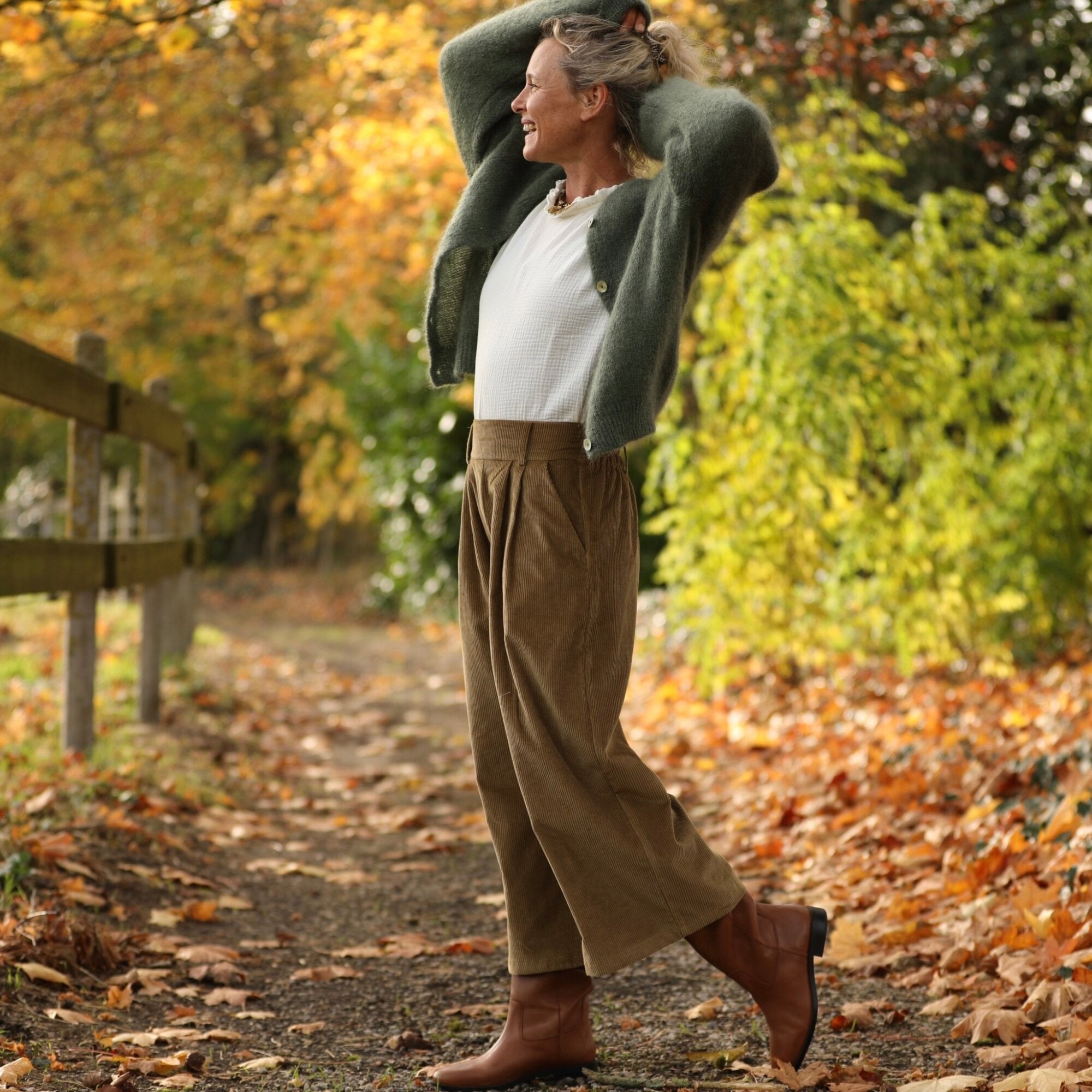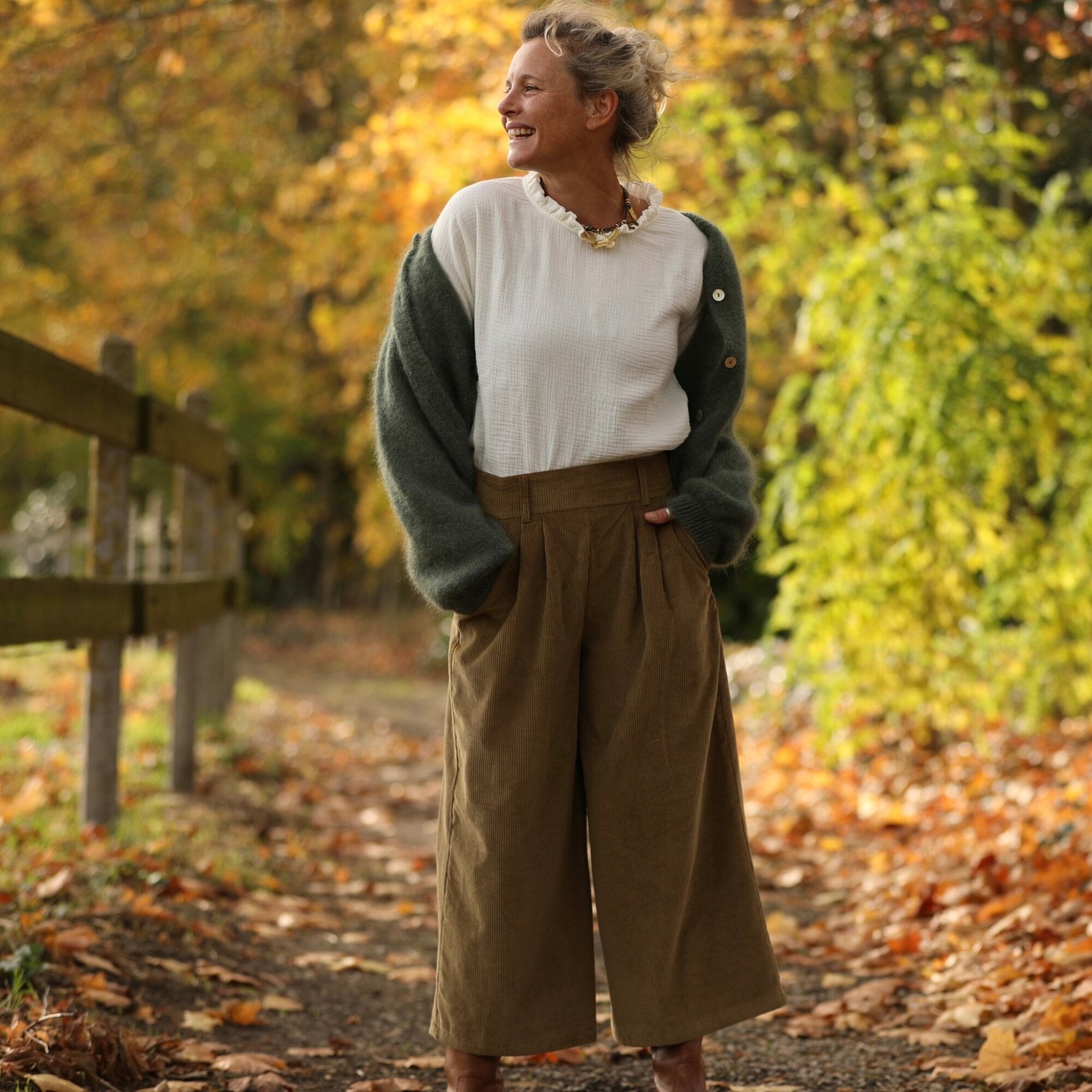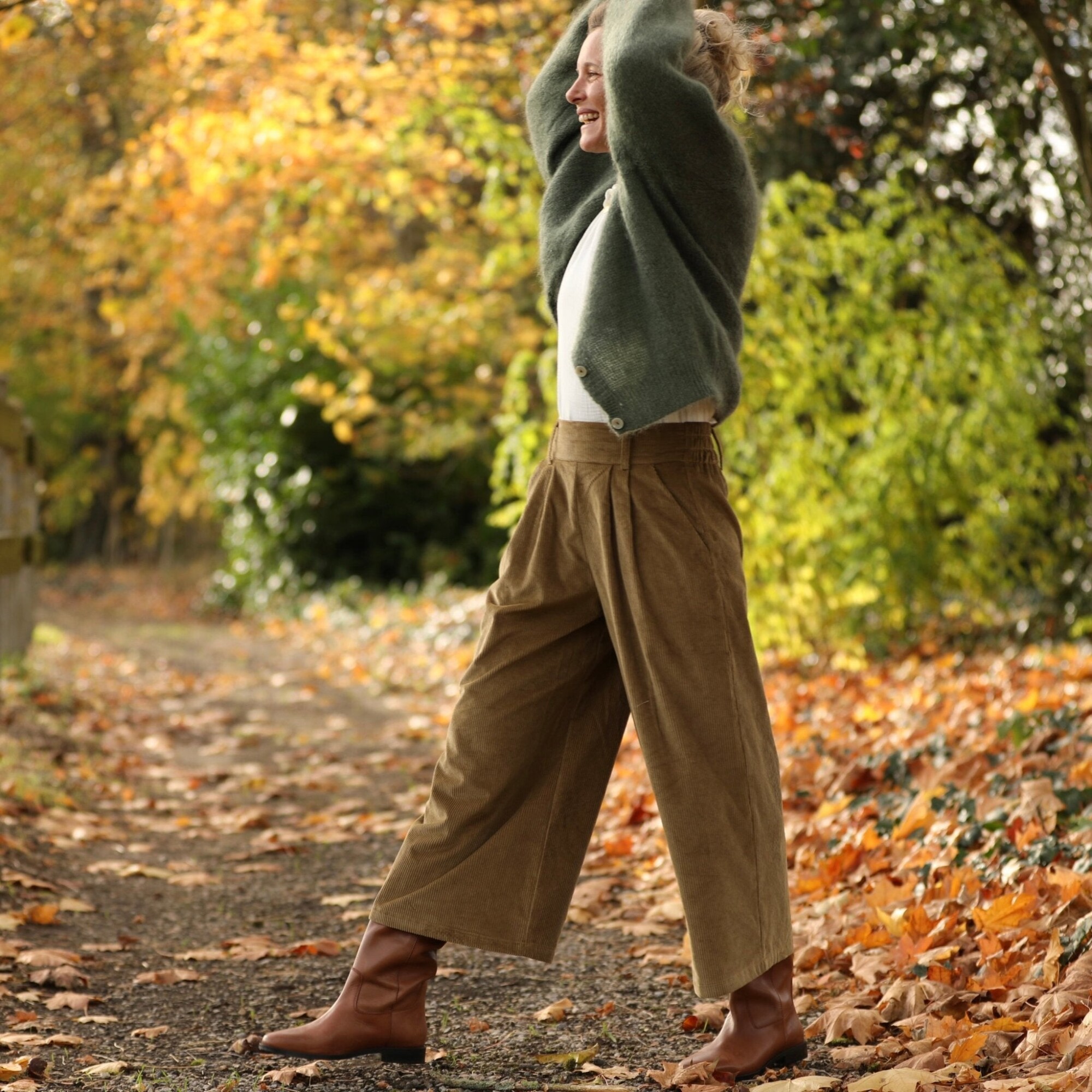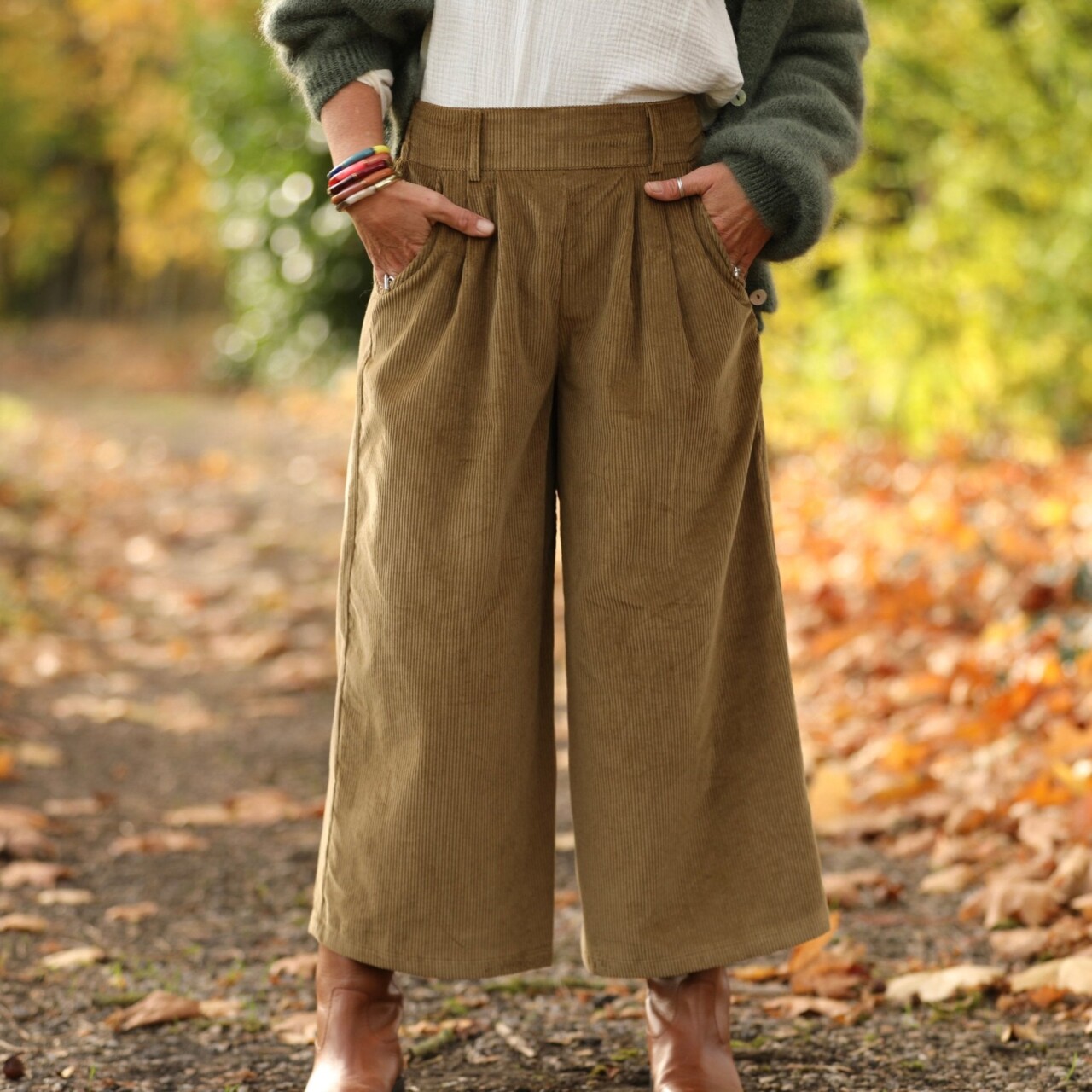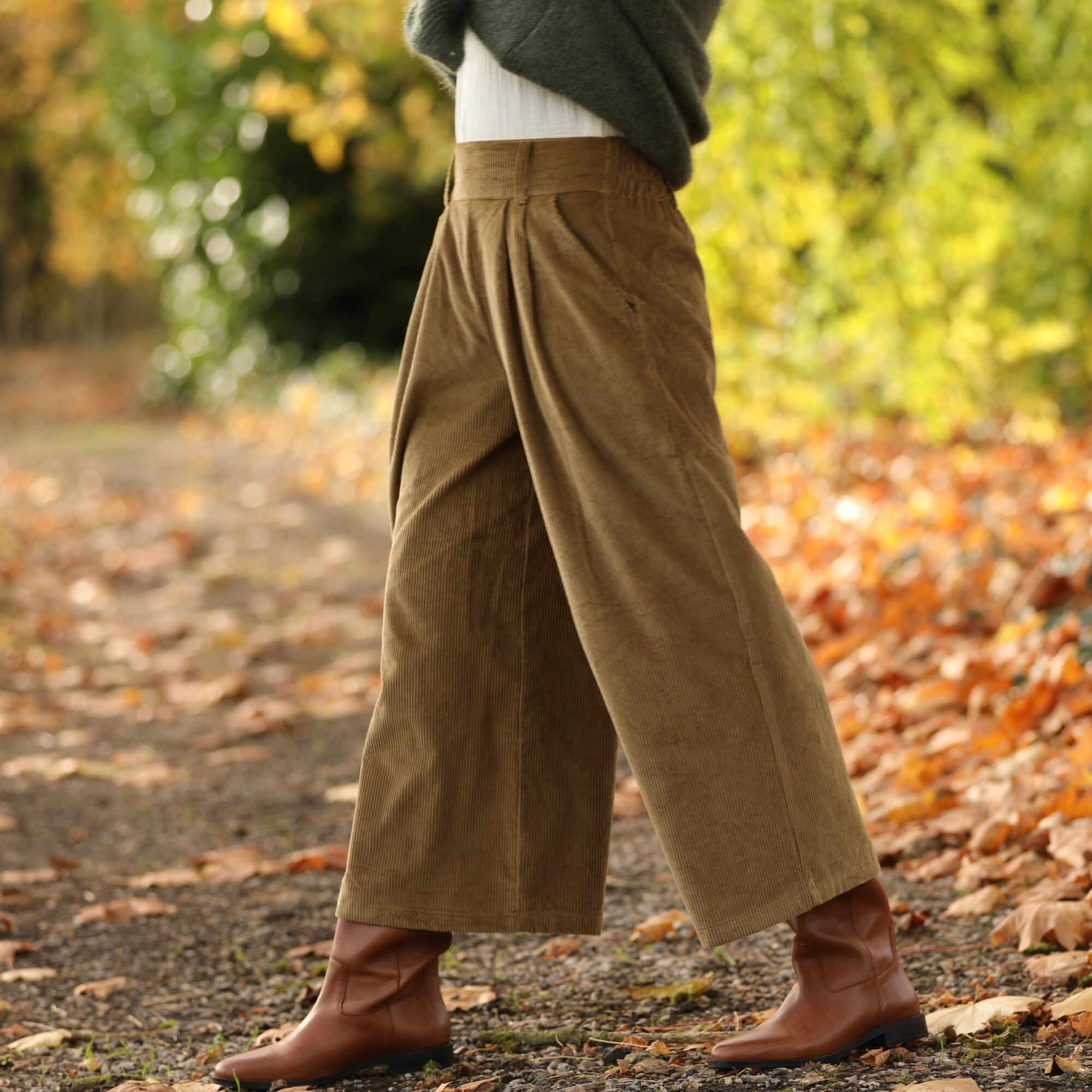 Jupe culotte Margot - velours côtelé kiwi