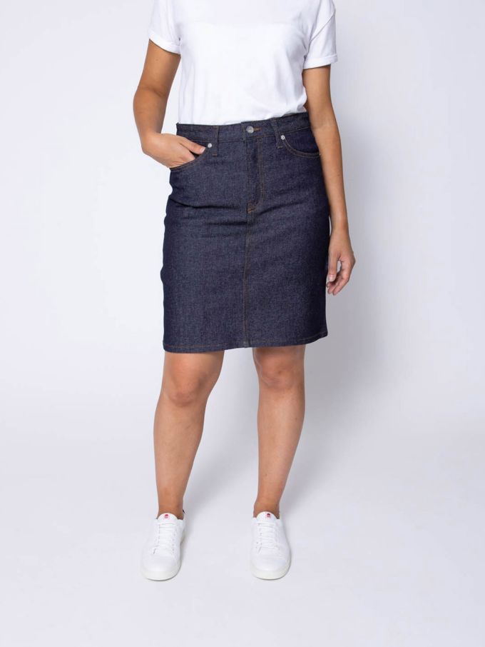 LA JUPE DROITE ZIPÉE L'indispensable jupe droite, notre 291. Nous l'avons déclinée dans le tissu SuperDenim Flex.