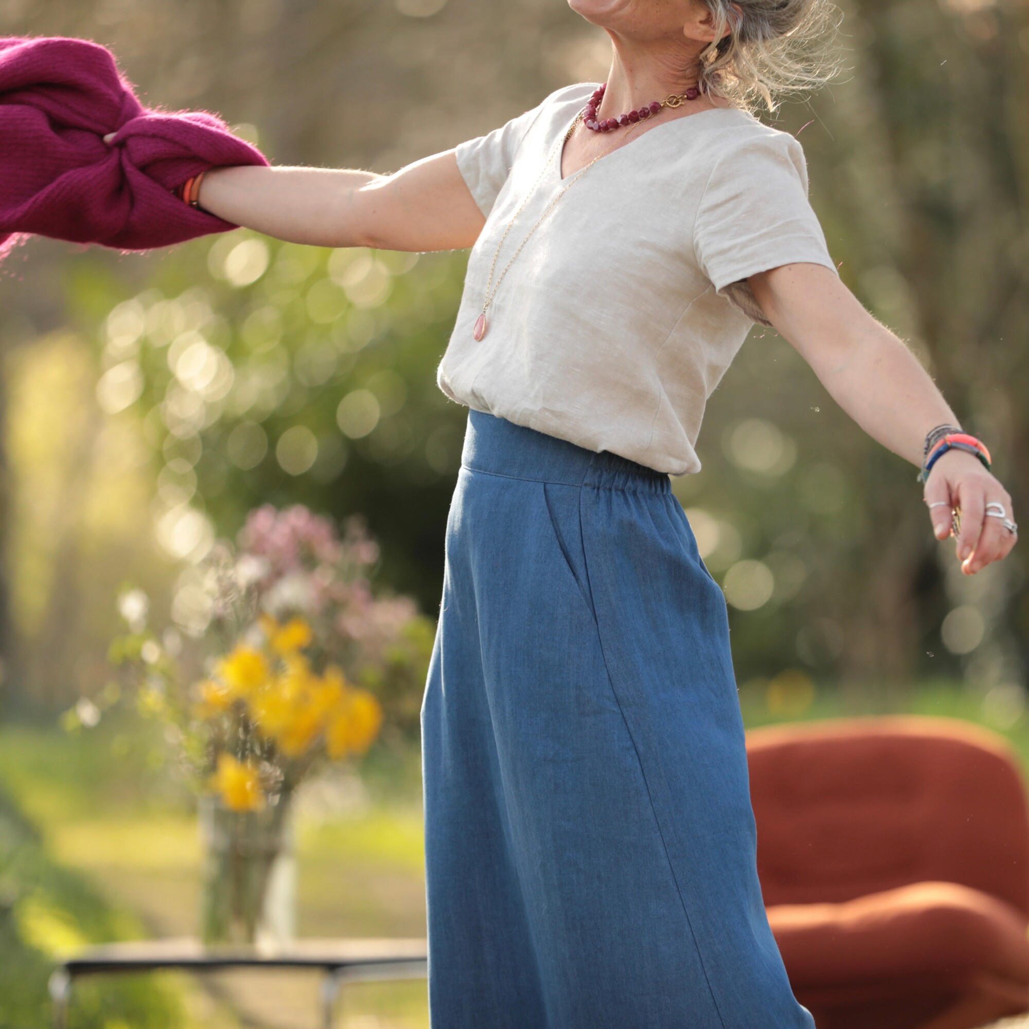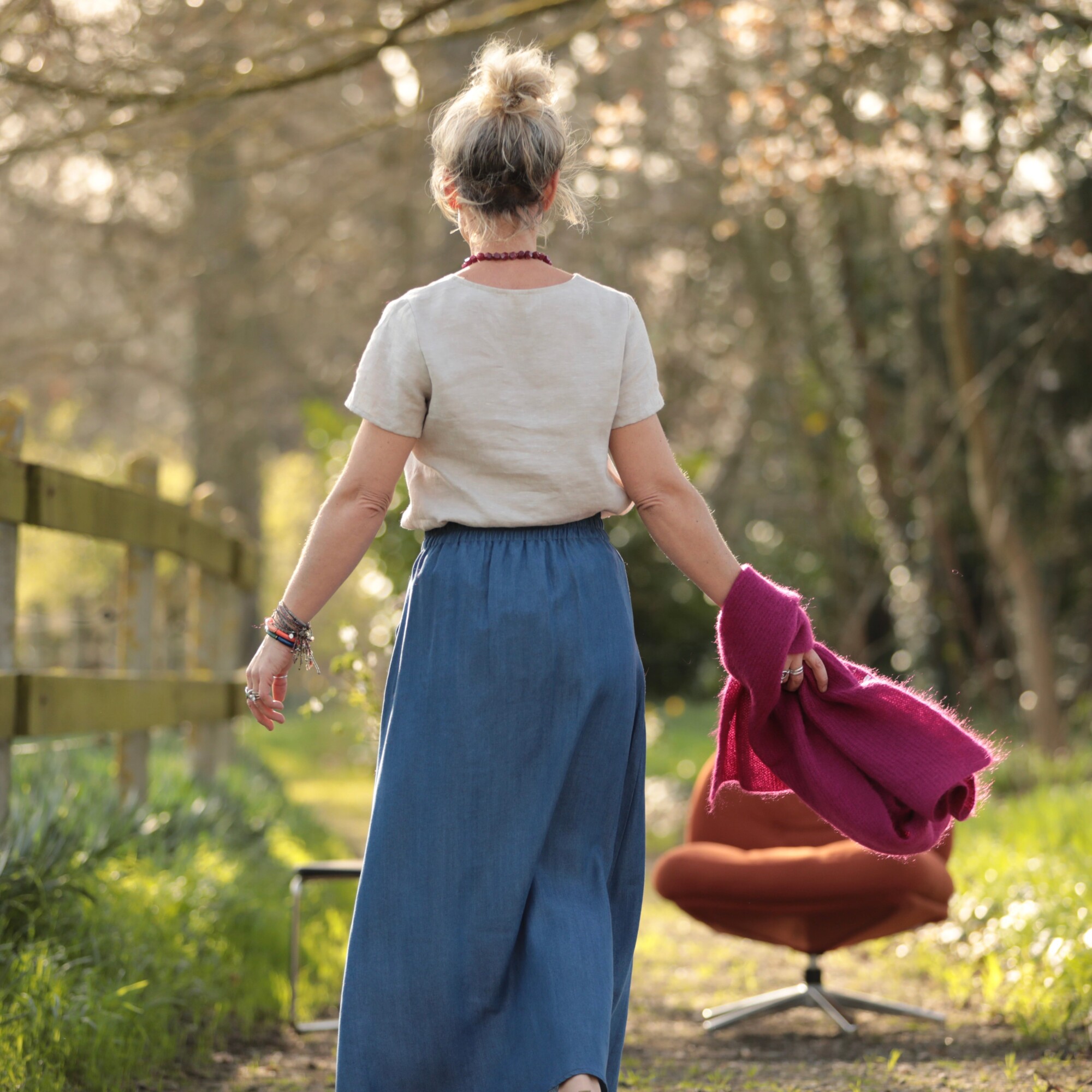 Maya se décline ici dans une version moderne et intemporelle. Confectionnée en jean lyocell bleu, elle allie l’esprit casual du denim à la douceur et à la fluidité d’une matière naturelle et confortable.