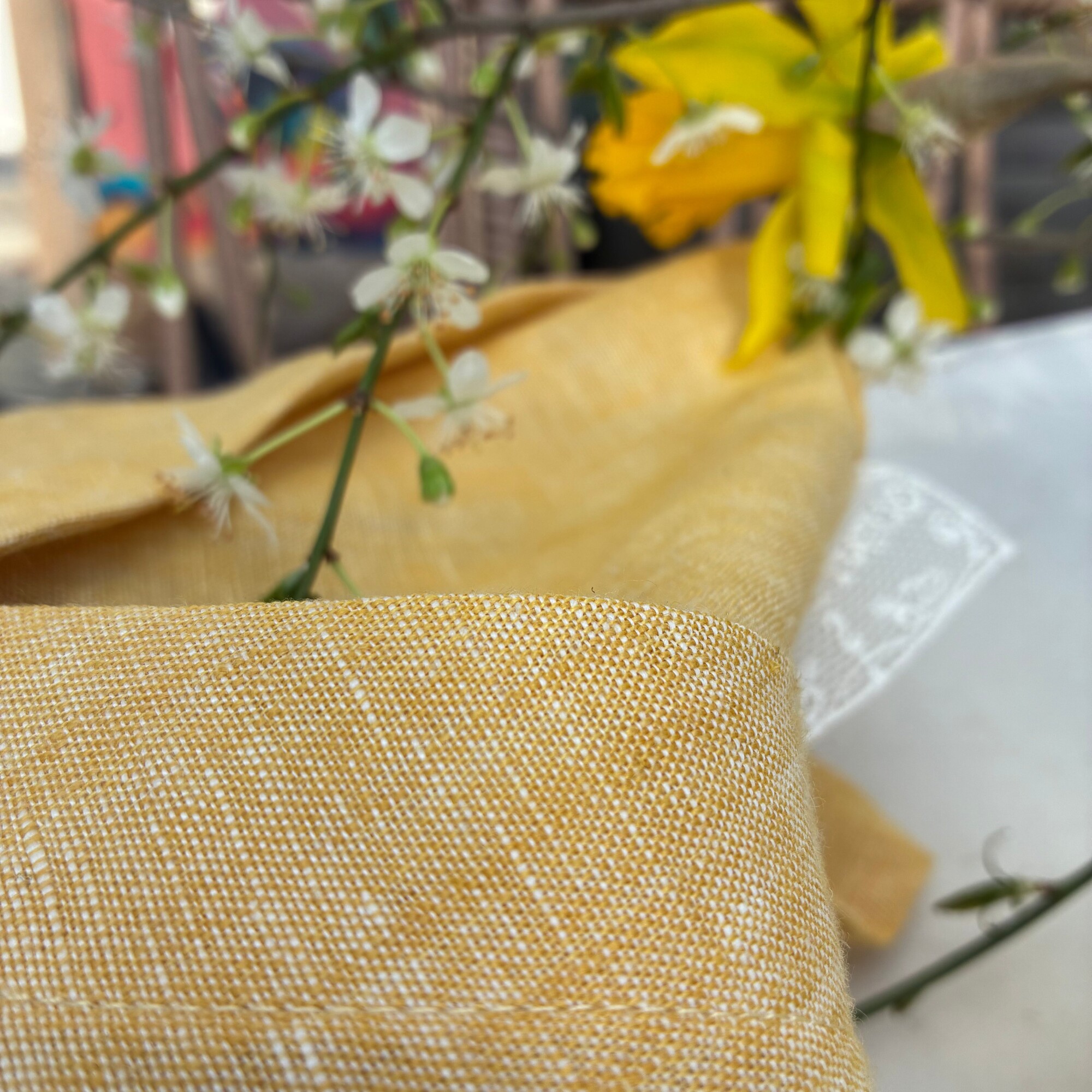 Maya se décline ici dans une version lumineuse et délicate. Confectionnée en lin chiné jaune doux, elle apporte une touche solaire tout en conservant une élégance naturelle et subtile.