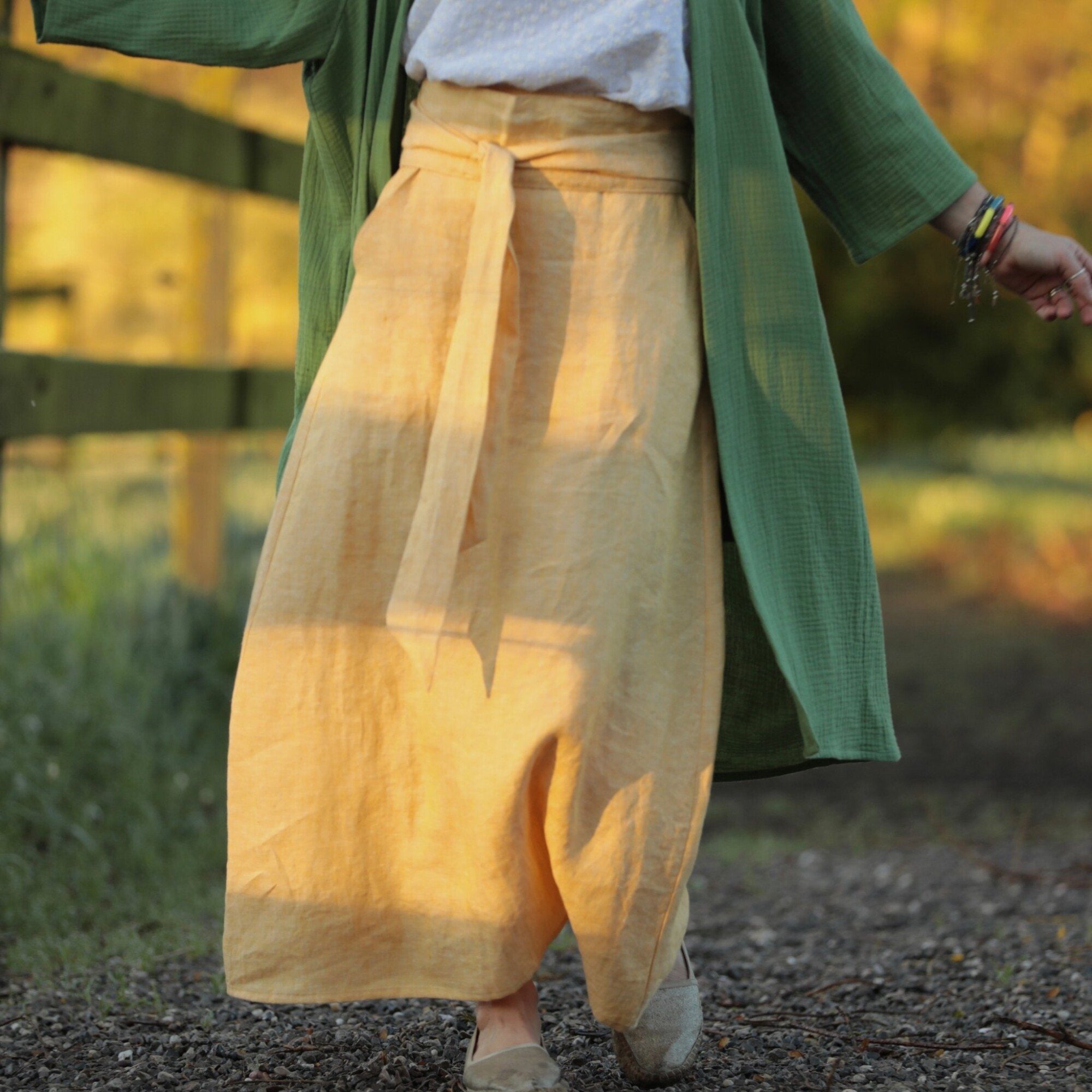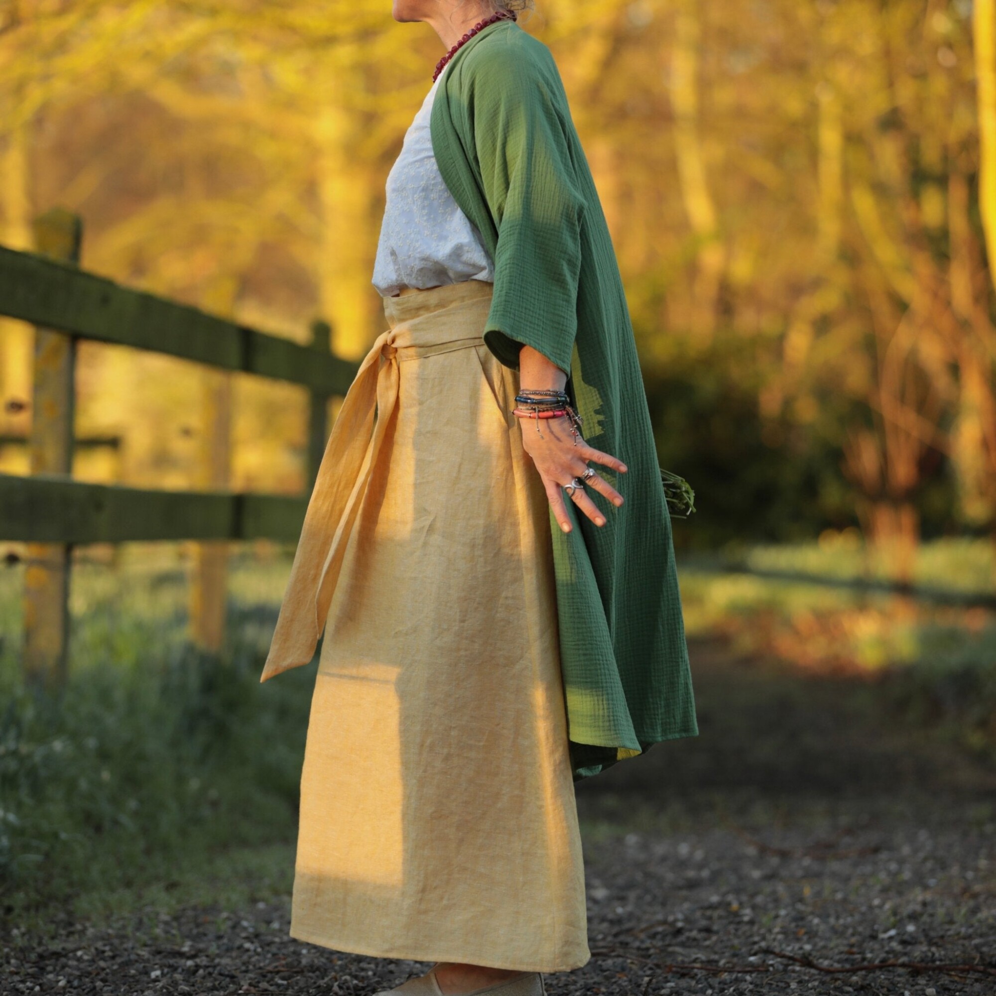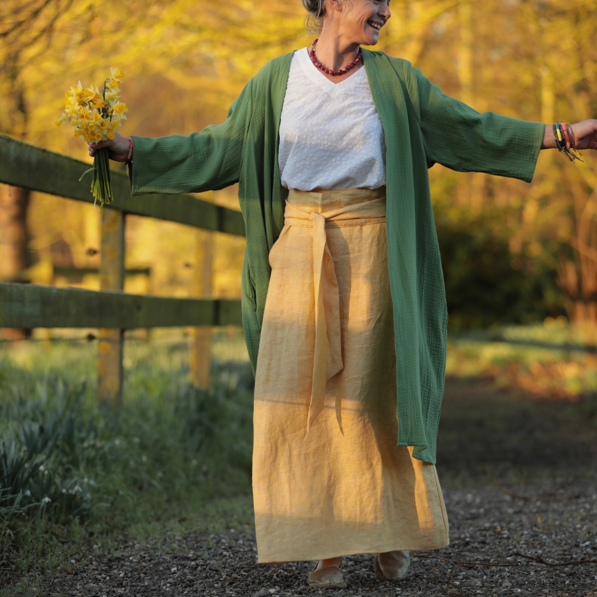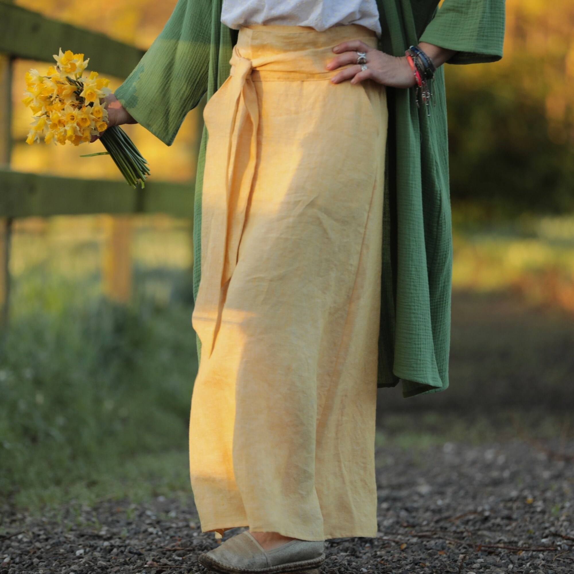 Jupe longue Maya - lin chiné jaune doux