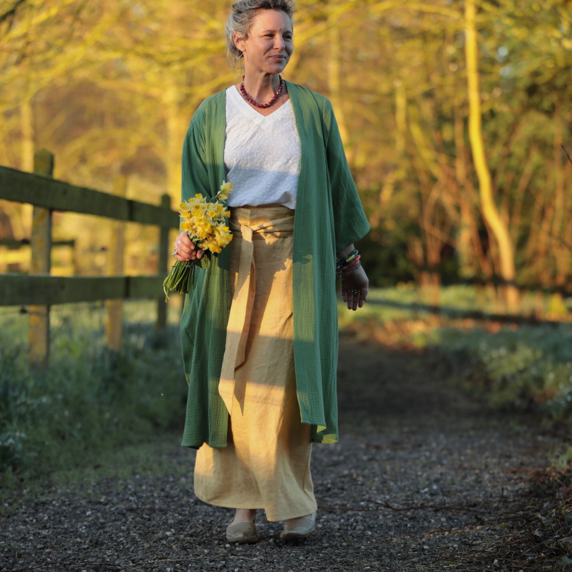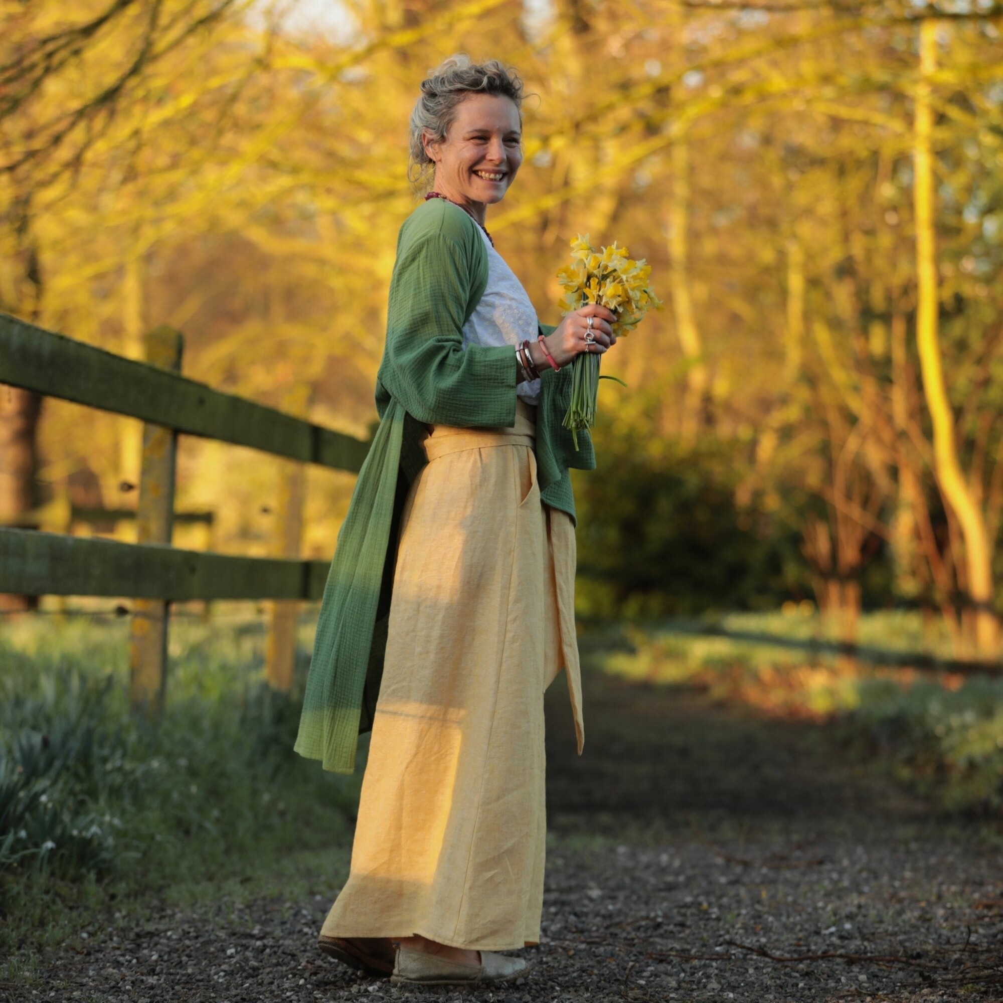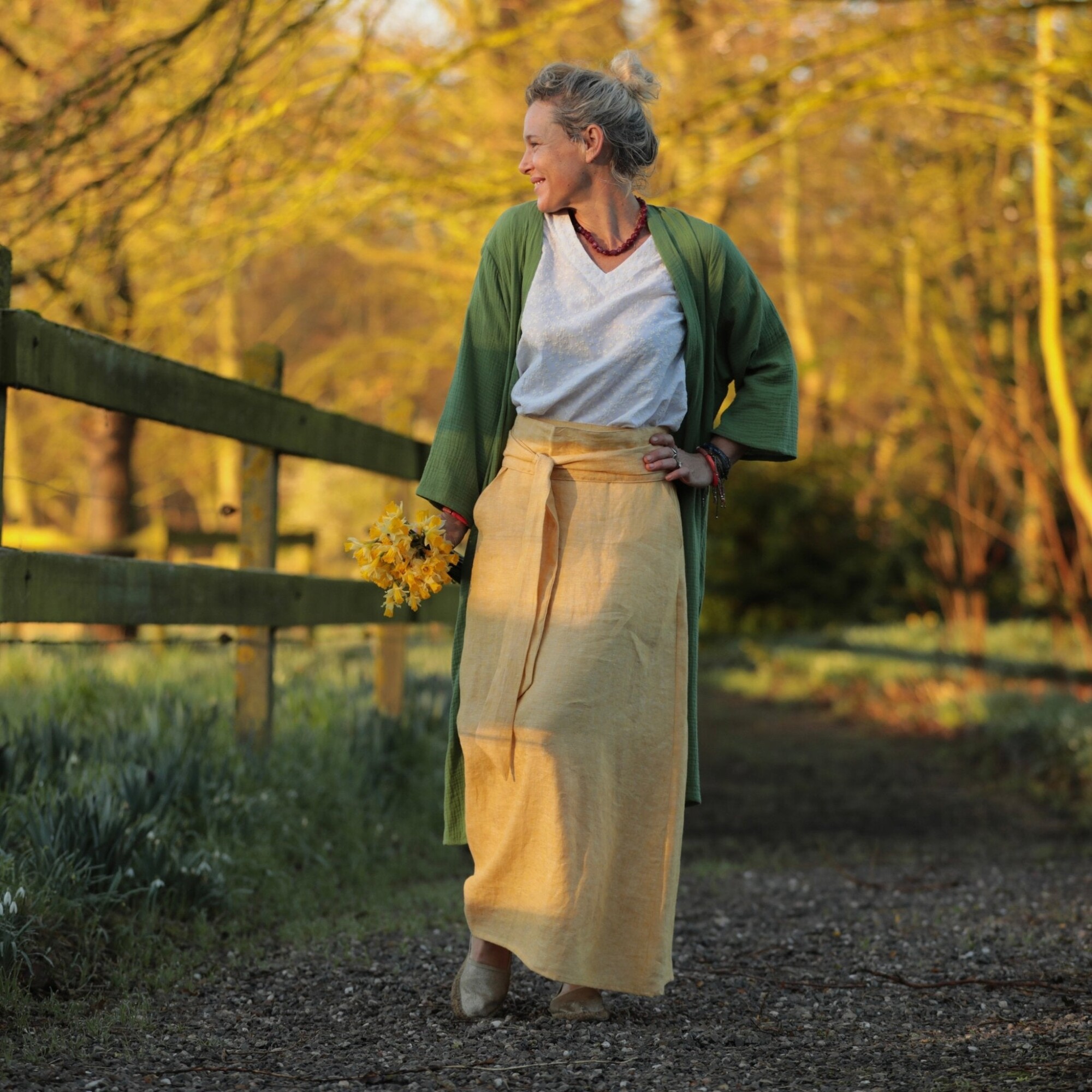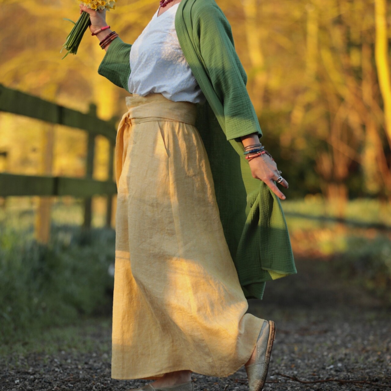 Jupe longue Maya - lin chiné jaune doux