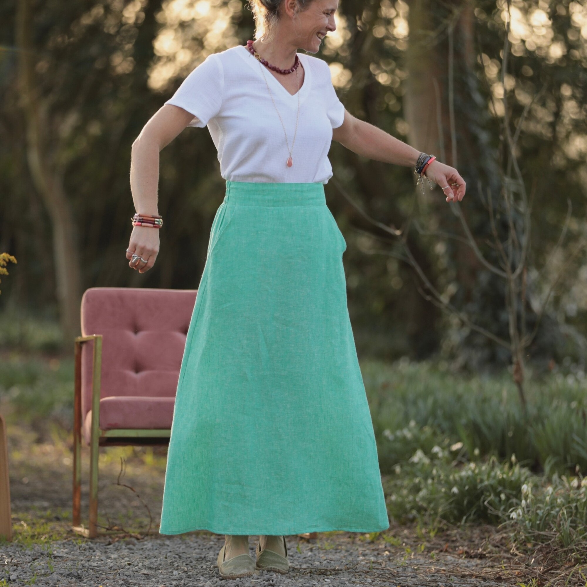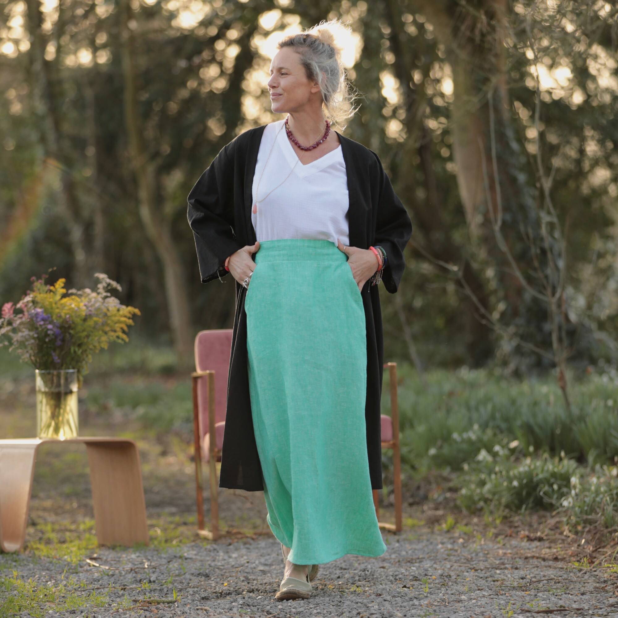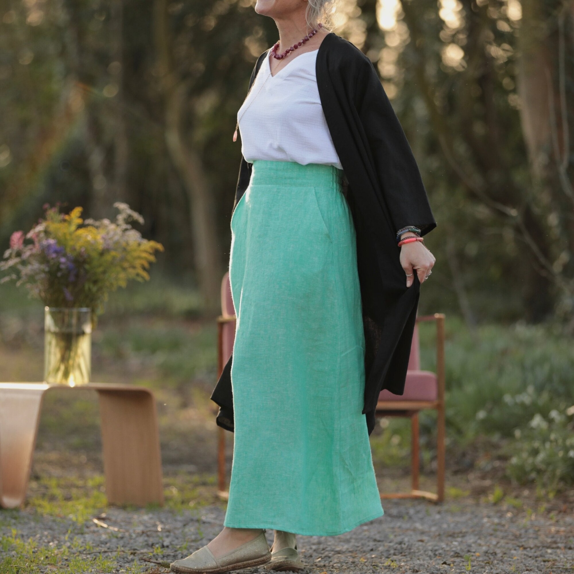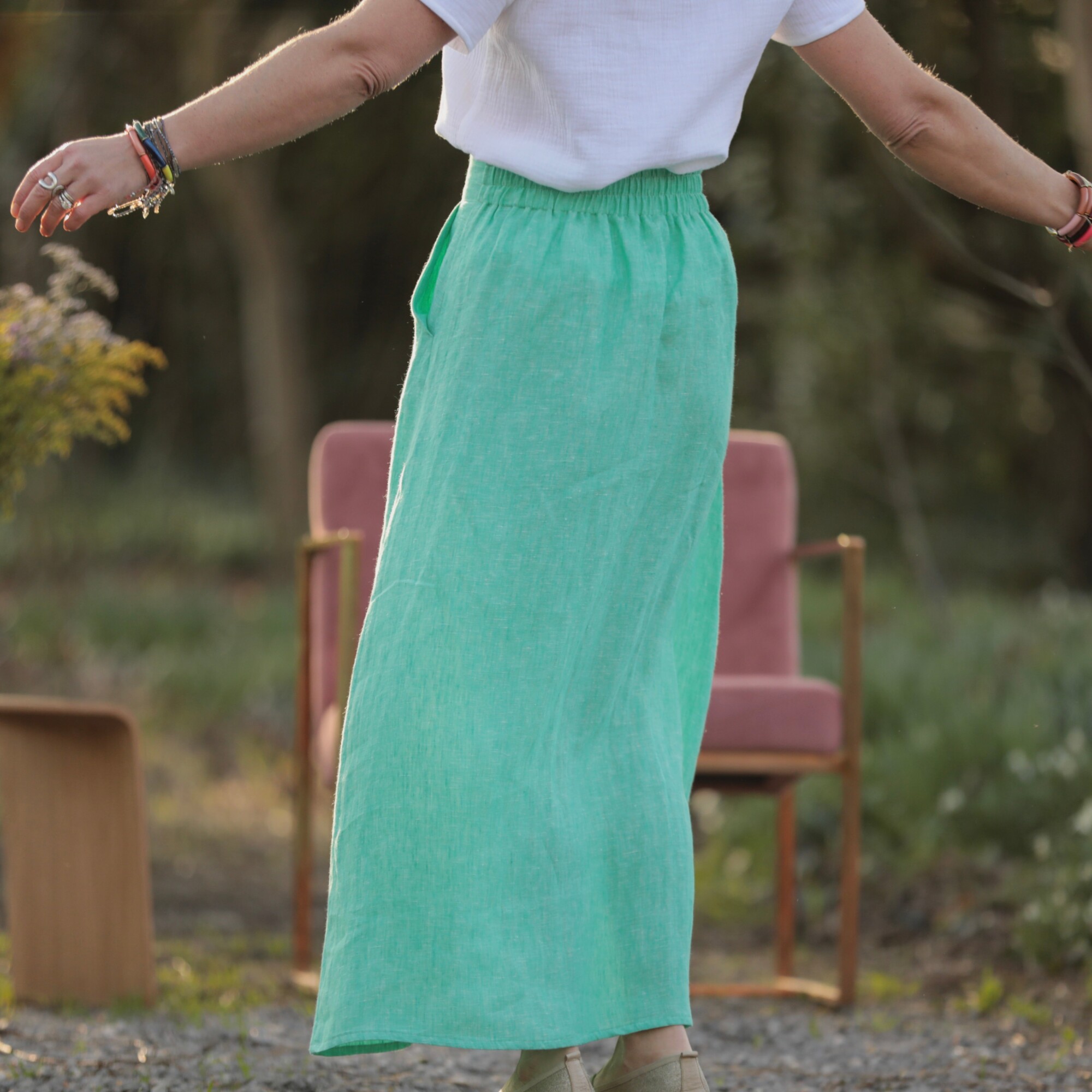Jupe longue Maya - lin chiné vert pep's