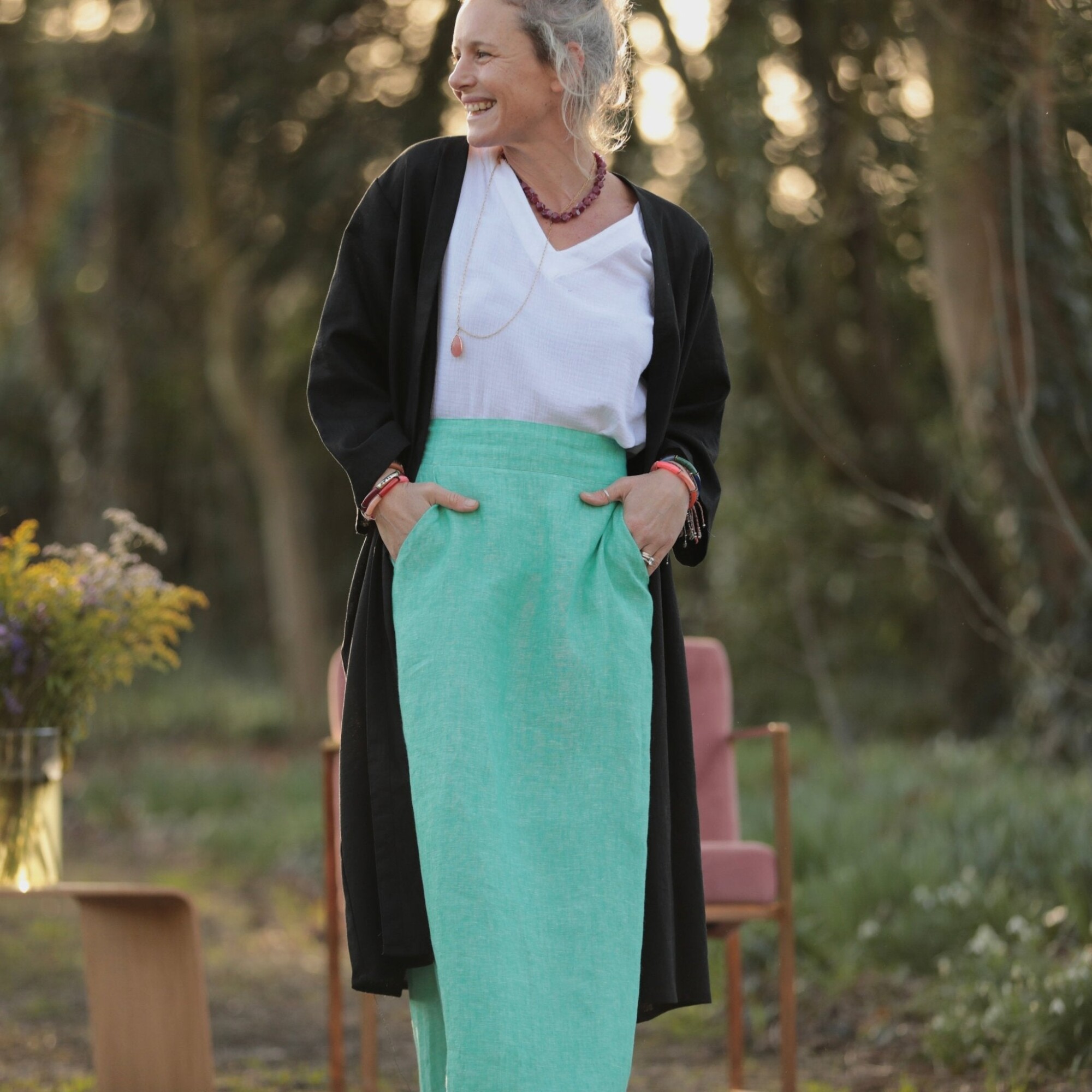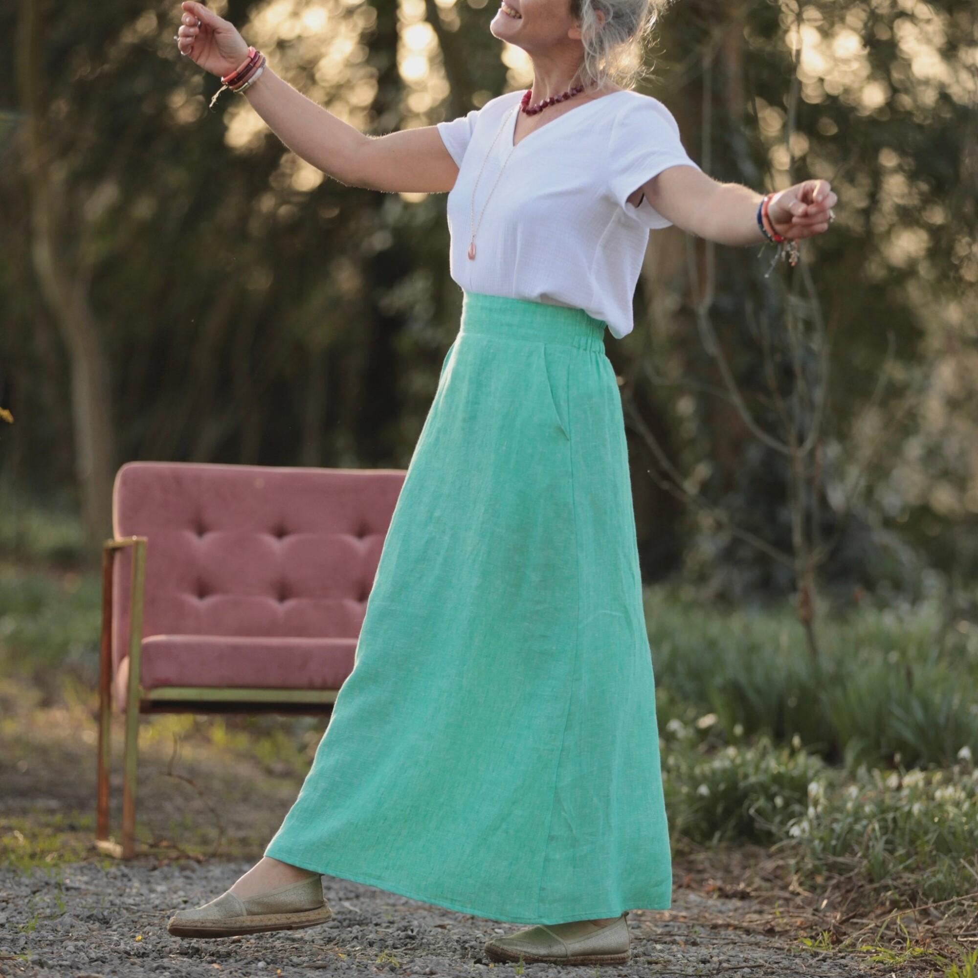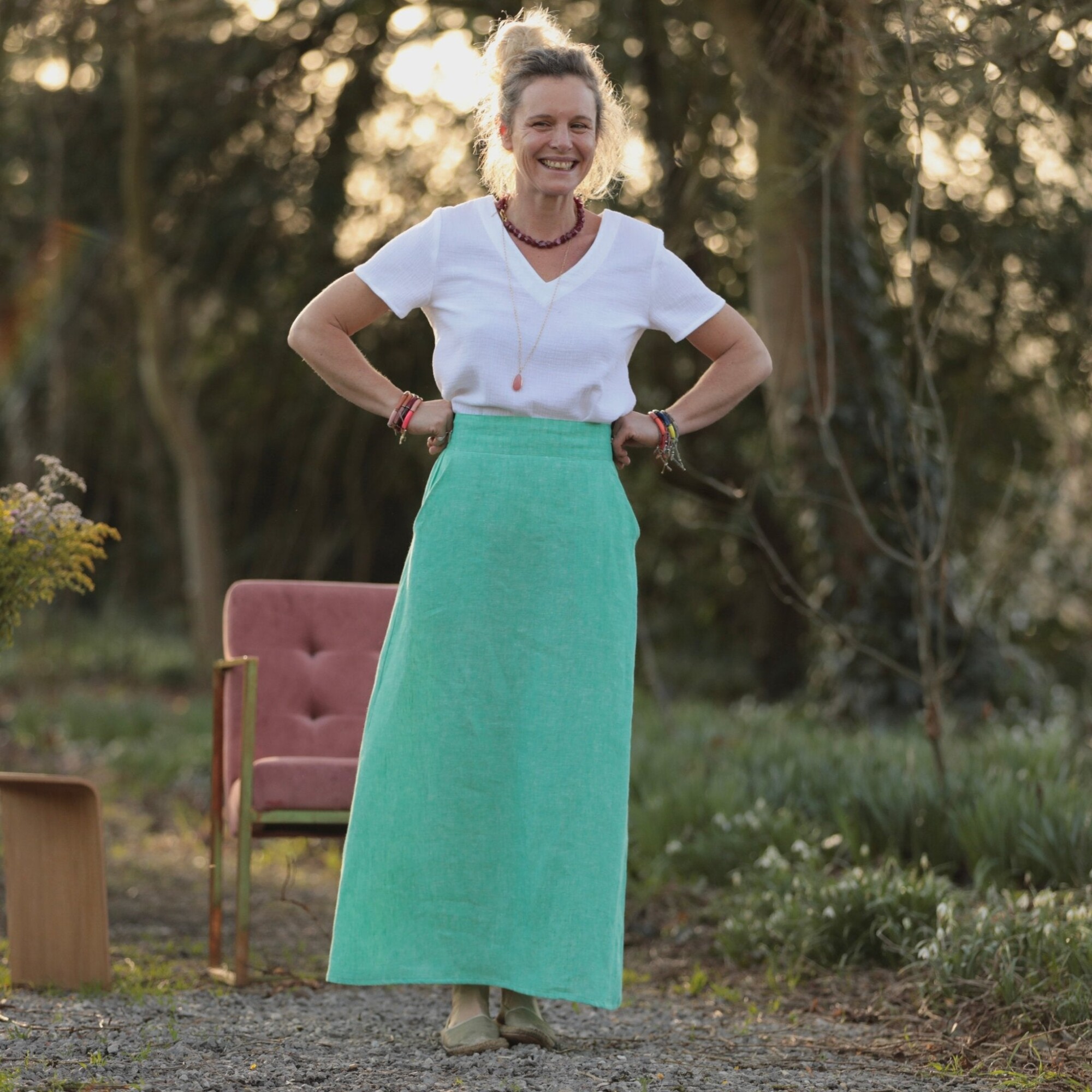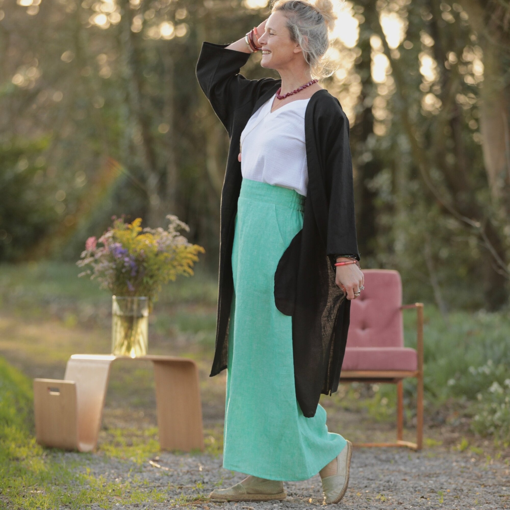 Jupe longue Maya - lin chiné vert pep's