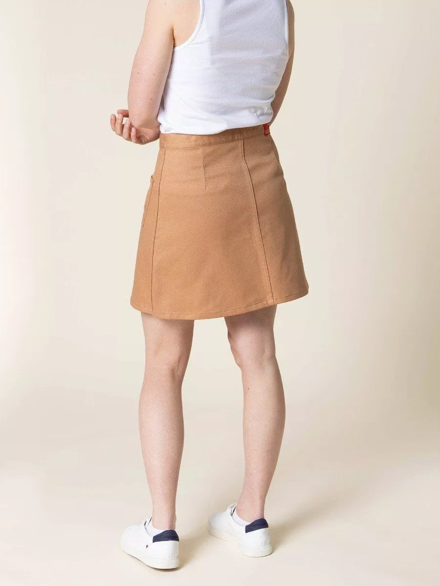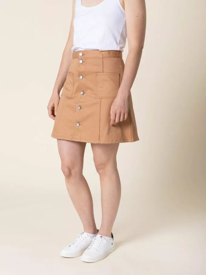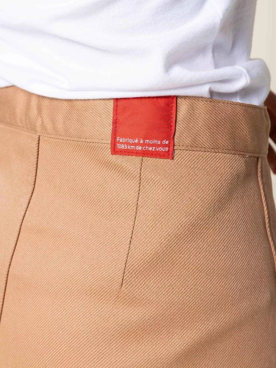 LA JUPE MARRON ARGILE FEMME Cette jupe marron argile a été conçue dans notre tissu DenimOriginal, 100 % coton bio. Avec sa coupe légèrement évasée et son tissu souple, cette jupe sublime votre silhouette tout en étant ultra agréable et facile à porter ! Elle peut se porter en taille haute ou posée sur les hanches, à vous de choisir ! Si vous souhaitez la porter en taille haute, il vaut mieux choisir la plus petite taille.