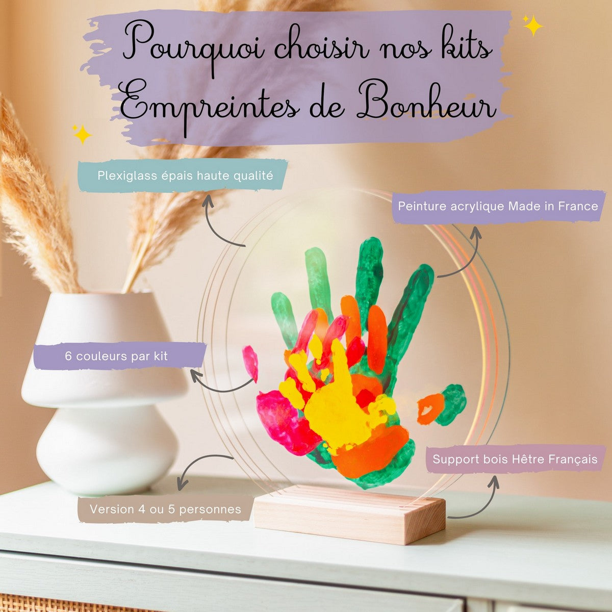 Créez des Souvenirs Inoubliables avec Notre Kit d'Empreintes Made in FranceÀ la recherche du cadeau parfait pour une famille de 4 membres ou une future maman ? Découvrez notre kit d'empreintes "Famille de 4 - Empreintes de Bonheur" ! Conçu avec amour et fabriqué en France, ce coffret de naissance est bien plus qu'un simple cadeau, c'est une expérience inoubliable.Caractéristiques Exceptionnelles :✨ Made in France : Soutenez le savoir-faire local en optant pour un produit fabriqué avec passion dans notre atelier en France, spécialement conçu pour les familles.
