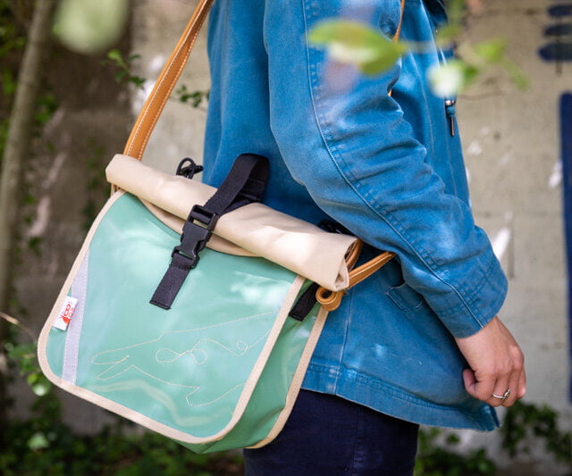 La Baleine propose des sacoches de vélo sobres et colorées. Elles sont éditées en petites séries, rendues pièce unique par une broderie Baleine.