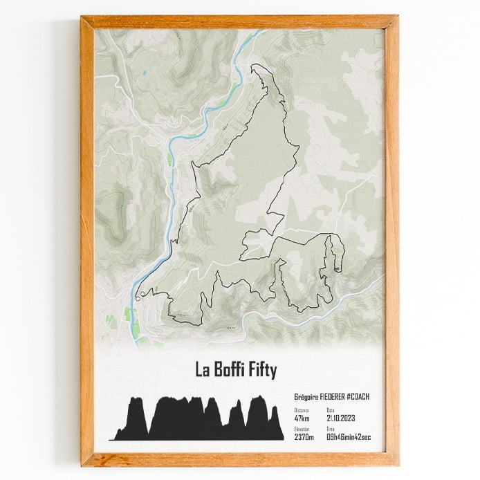 Cette affiche du parcours du La Boffi Fifty course des templiers est imprimée sur du papier brillant haute qualité . Pour créer un poster personnel et unique, ajoutez votre numéro de dossard, votre nom, prénom, votre temps d'arrivée ou le texte que vous souhaitez.
