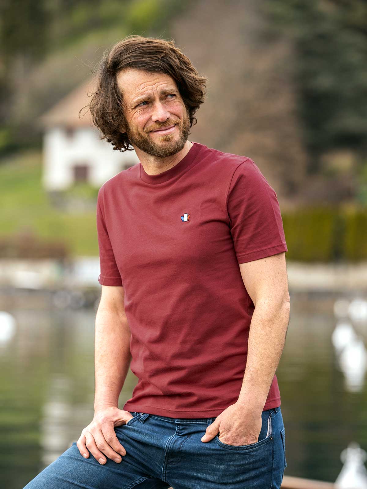 Blanc, noir, safran, bleu et aussi rouge bordeaux ! L''Authentique 3.0, notre t-shirt homme, se décline avec un nouveau coloris incontournable. Une couleur chaude et aussi douce que notre jersey 100% coton et son ruban en satin tricolore au col toujours 100% Made in France.Confectionné à Renaison dans la Loire (42) dans un atelier familial spécialisé dans la maille depuis 50 ans. Simon, notre mannequin mesure 1m81 et porte du M.