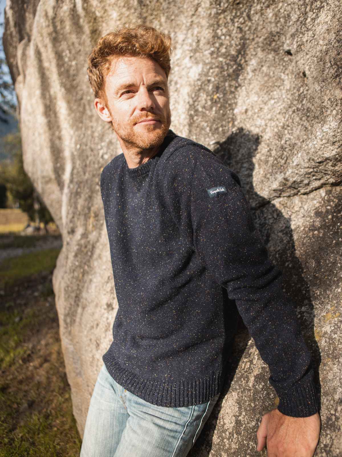Le pull recyclé avec des touches colorées. Notre pull Le Consciencieux est réalisé à base de vêtements collectés et triés par nuances de couleurs. Les touches colorées sont issues du recyclage du fil. La matière collectée est défibrée puis filée en France pour donner des disques aux nuances de couleurs uniques. Le col et les bords-côtes aux manches et à la hanche assurent une excellente tenue. Notre pull est filé à Brassac (81) puis tricoté à Roanne (42) dans une fabrication de plus de 35 ans d''existence pour un pull 100% Made in France. Manu, notre mannequin mesure 1m77 et porte du M/L, Chloé mesure 1m70 et porte du S/M.