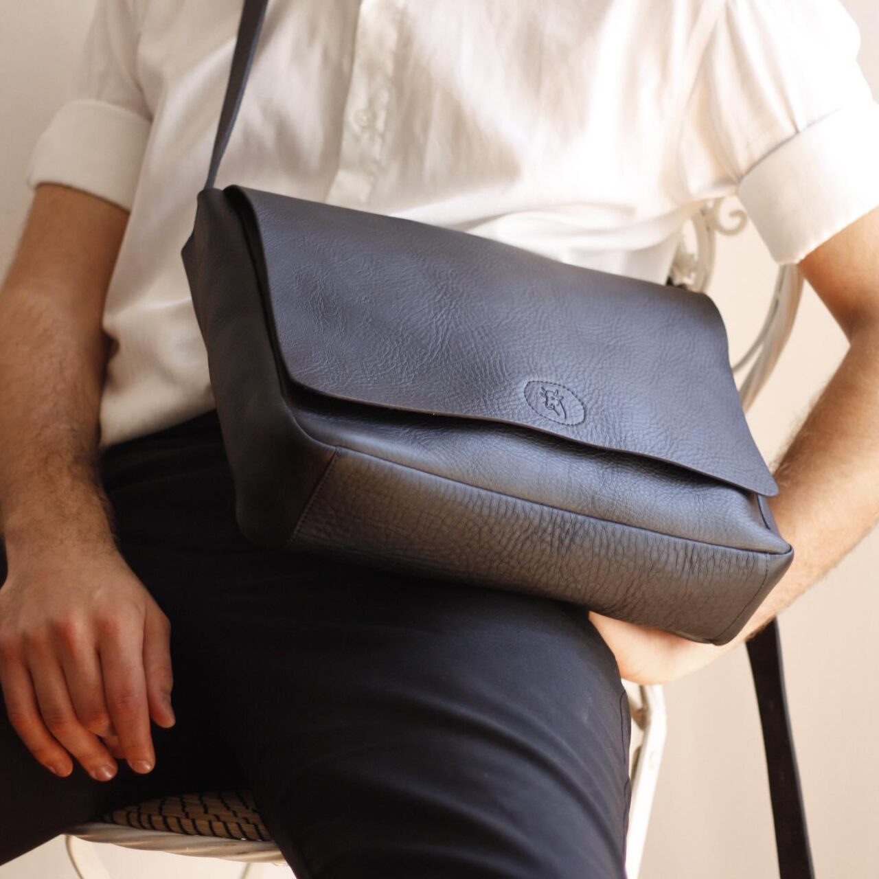 JUHAN c’est notre besace emblématique au masculin, pour les baroudeurs, les motards, les cyclistes. La besace se porte en bandoulière, pour ainsi avoir les mains libres.Nos sacs ne sont pas doublés et n’ont pas de poche intérieure cousue. Associez lui la pochette Jasmine indépendante si vous souhaitez une poche intérieure.Coutures intérieures et extérieures avec fil ton sur ton. Rabat avec aimant pour fermer le sac. La lanière est cousue sur un des côtés et se ferme sur le côté opposé grâce à une boucle qui s’insère dans une patte. Celle-ci est fermée par deux boutons pression ton sur ton pour plus de solidité. 10 trous sont faits pour ajuster la longueur et le porter soit à l‘épaule soit en cross-body. La besace se porte avec une boucle complète en laiton doré vernis ou nickelé (3 cm de large).