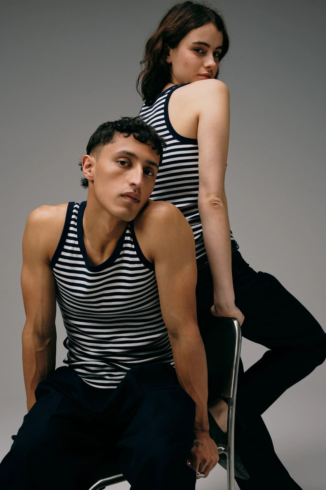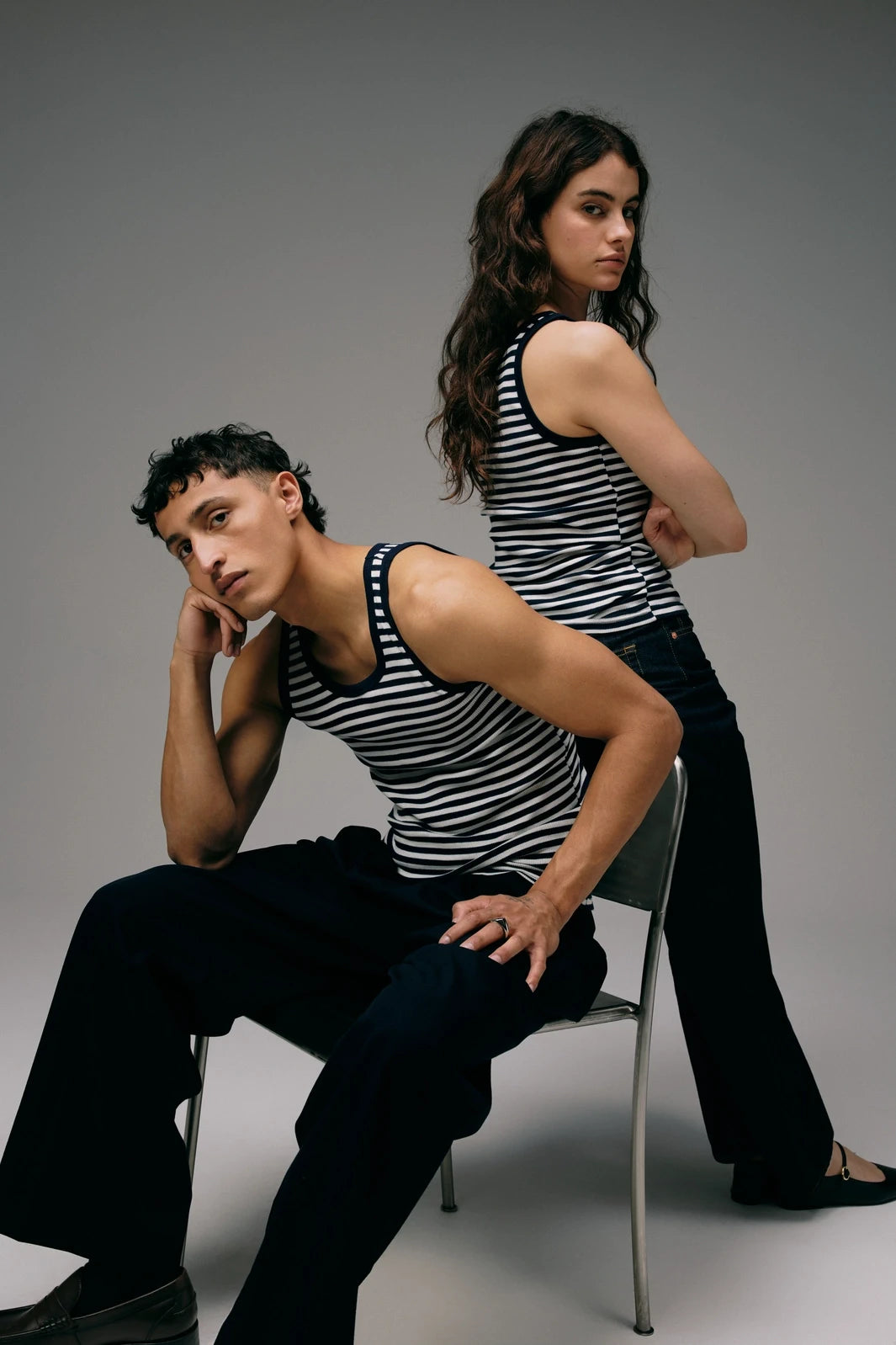Tricots Marcel crée des essentiels qui épousent la peau : débardeurs, T-shirts en coton côtelé Pima et pulls en laine Mérinos. Des pièces tricotées en France, douces, durables et à fleur de peau.