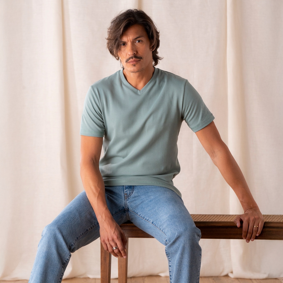 Le t-shirt en coton bio - Col V - Vert Celadon