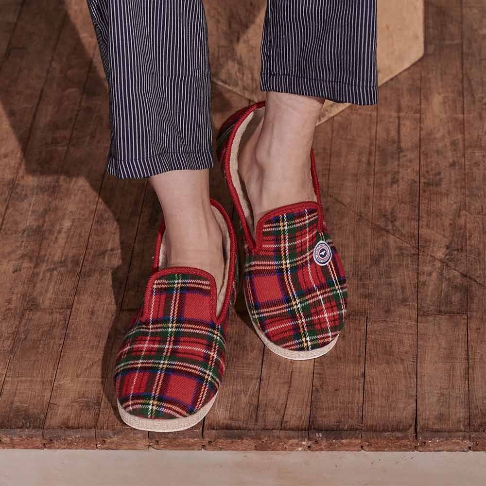 Les Charentaises tartan rouge mixtes en laine