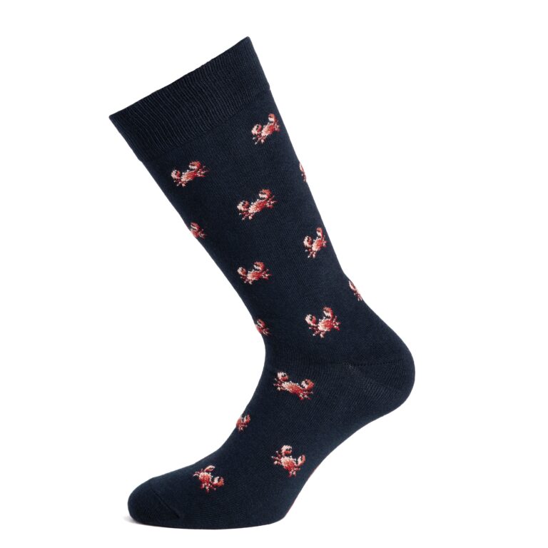 Conçues dans un beau coton bleu marine, ces chaussettes masculines sont intemporelles. Elles s'accordent à toutes les envies, du look décontracté façon retour de vacances, aux tenues plus habillées. Leur motif raffiné de petits crabes rouges évoque avec subtilité l'univers marin, pour un équilibre parfait entre authenticité et originalité.