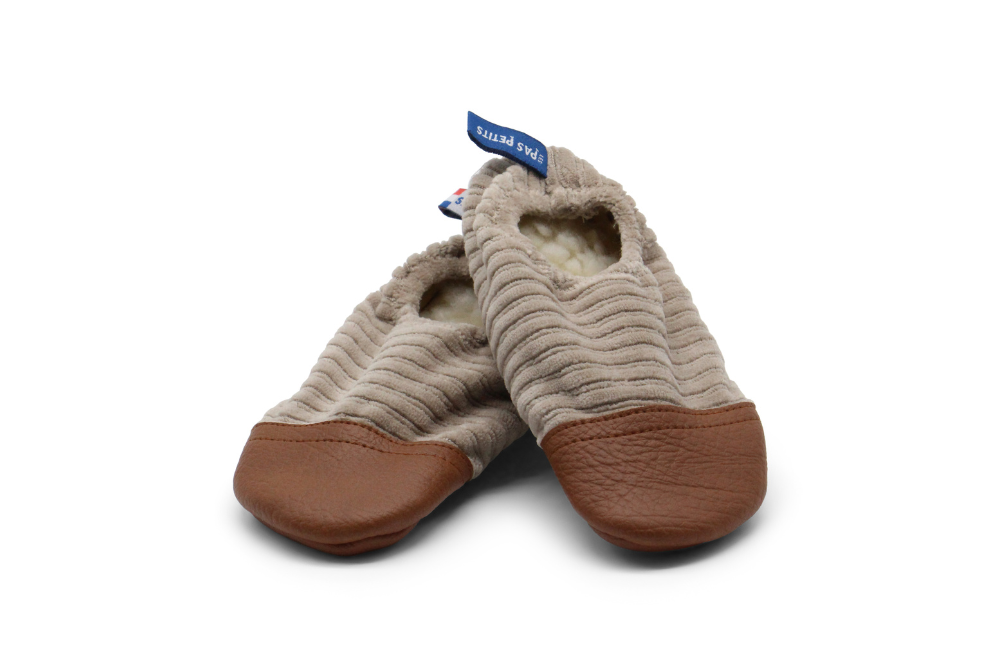 Craquez pour Les Petits Velours Noisettes , une jolie paire de chaussons souples et sensation pieds nus . Chauds, doux et confortables , grâce à leur doublure intérieure imitation peau de mouton , ils seront parfaits pour un automne/hiver bien au chaud !Et ce n’est pas tout : leurs semelles limitent les glissades sur surfaces sèches et mouillées !Confectionnés avec soin et amour en France .