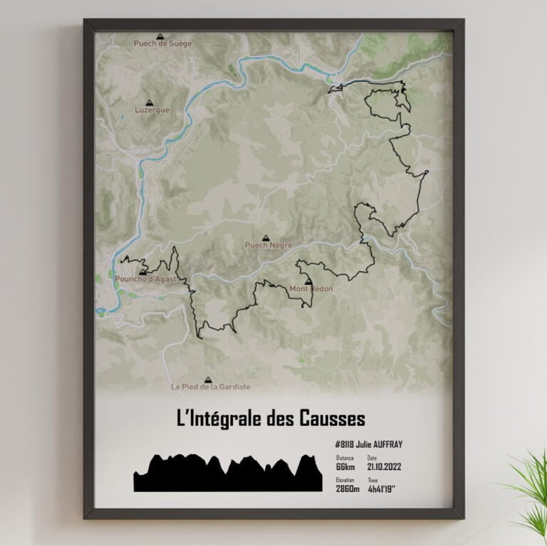 Cette affiche du parcours du L’intégrale des Causses course des templiers est imprimée sur du papier brillant haute qualité . Pour créer un poster personnel et unique, ajoutez votre numéro de dossard, votre nom, prénom, votre temps d'arrivée ou le texte que vous souhaitez.