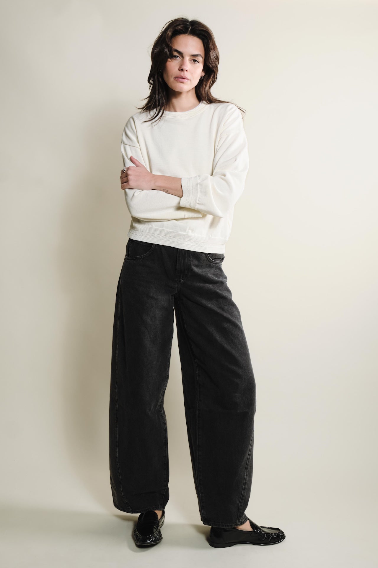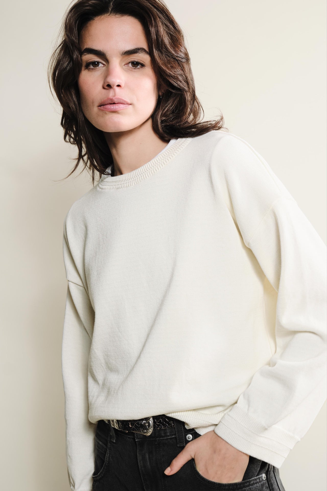 La maille Loucine à col rond se distingue par sa coupe élégante et légère, pensée pour offrir à la fois confort et style. Sa forme ample avec épaules tombantes assure un tombé fluide, idéal pour la mi-saison, couvrante tout en restant respirante et légère. Confectionnée en 100 % coton biologique et certifiée GOTS, OCS Blended et OEKO-TEX® Standard 100, cette maille allie qualité, traçabilité et respect de l’environnement. Son tricotage en jersey maille fine sur toute la pièce révèle des détails soignés au niveau du col, du bas de pièce et des poignets, ajoutant une touche de raffinement discret. Le fil sec au toucher frais garantit un confort optimal tout au long de la journée, faisant de la maille Loucine une pièce élégante, légère et polyvalente, parfaite pour vos tenues de mi-saison. Matière : 100 % coton bio, certifié OEKO-TEX® Standard 100 Tricotage : Jersey maille fine Coupe : Élégante et légère Finitions : Col, bas de pièce et poignets travaillés Toucher : Sec et frais