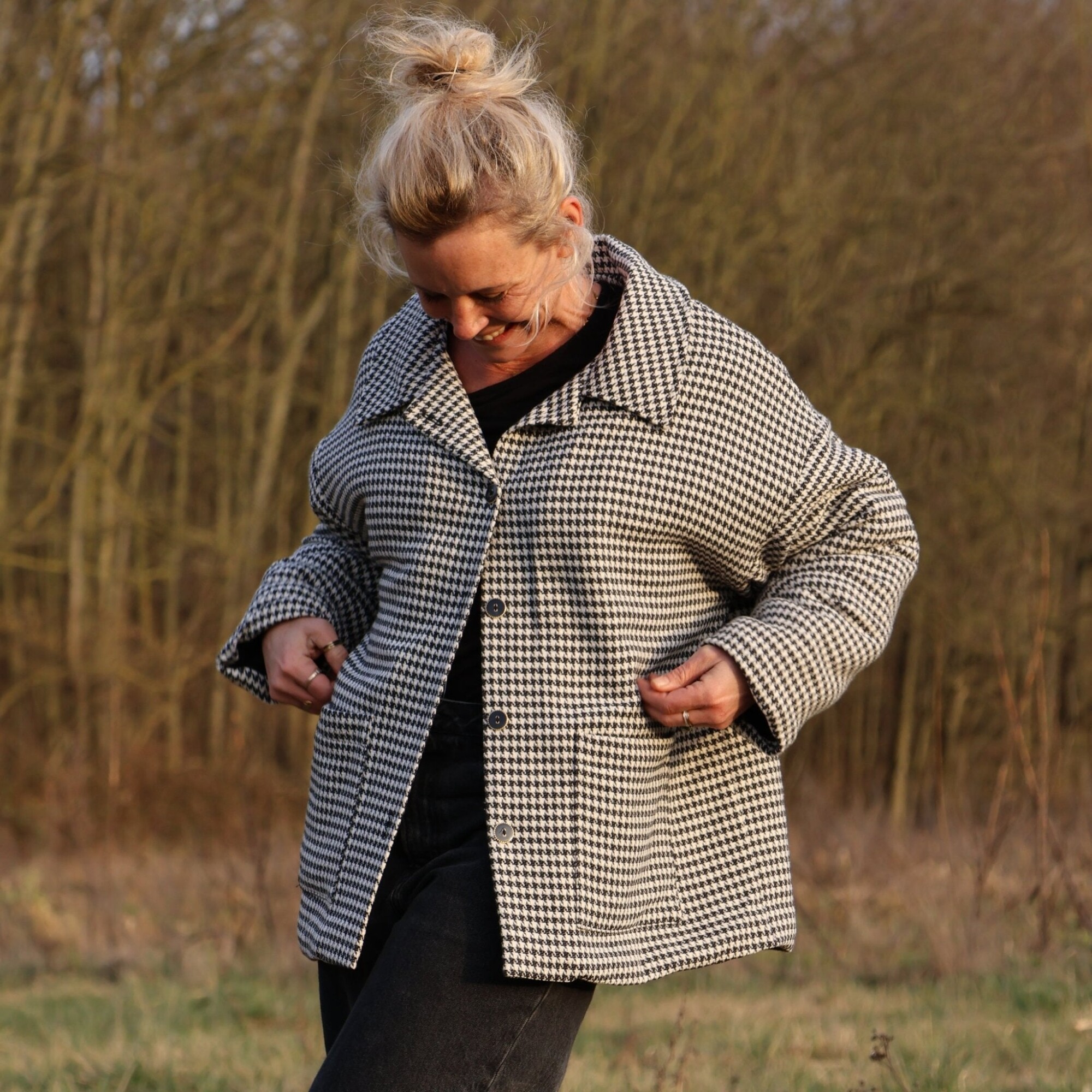 Manteau Kaï pied de poule noir