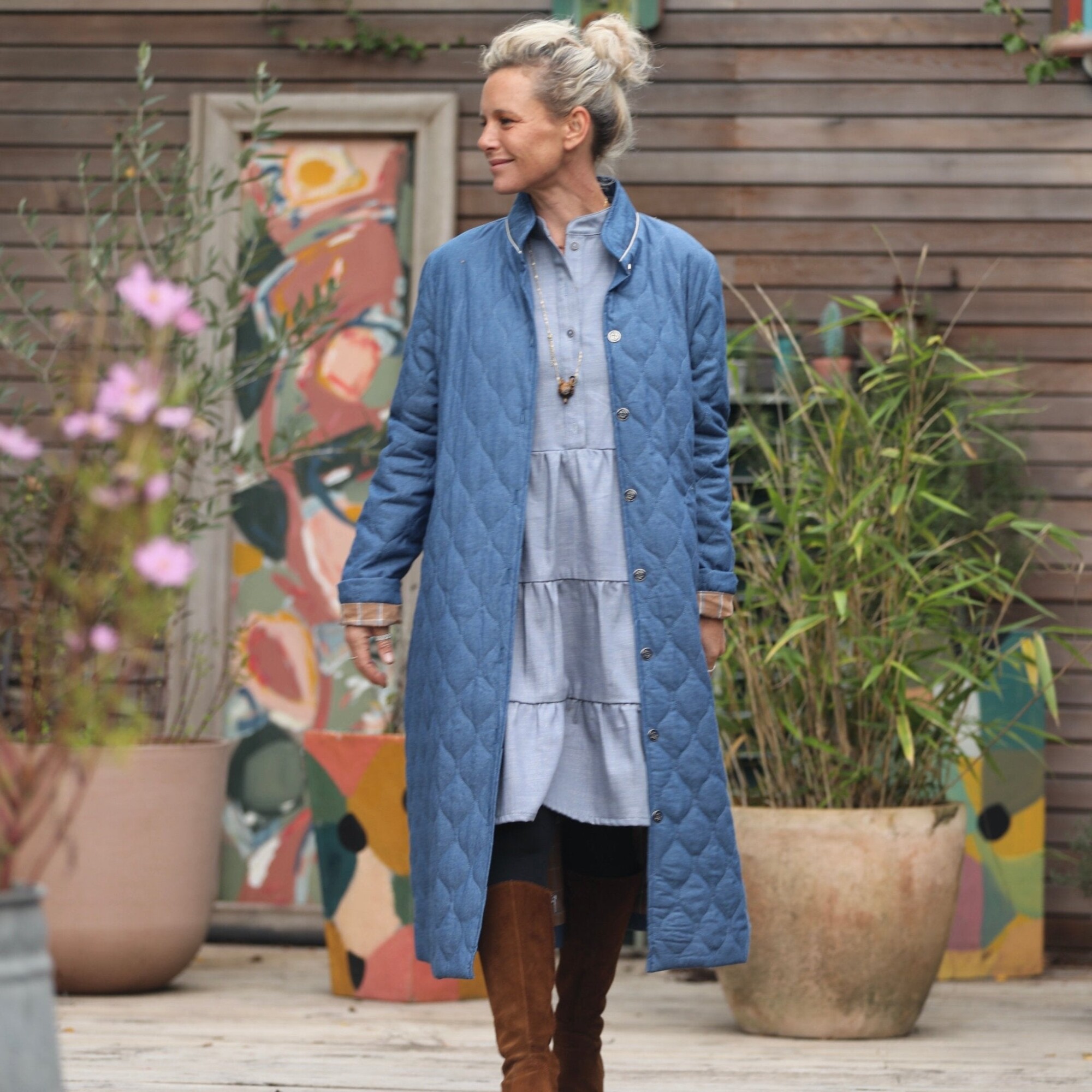 Manteau Paul long - jean bleu matelassé
