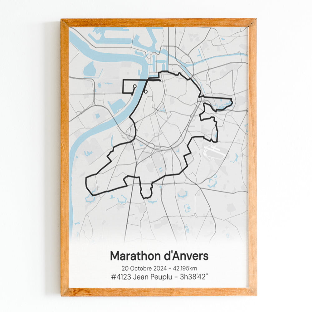 Cette affiche du parcours du Marathon d'Anvers est imprimée sur du papier photo brillant haute qualité.Pour créer un poster personnel et unique, ajoutez votre numéro de dossard, votre nom, prénom, votre temps d'arrivée ou le texte que vous souhaitez.