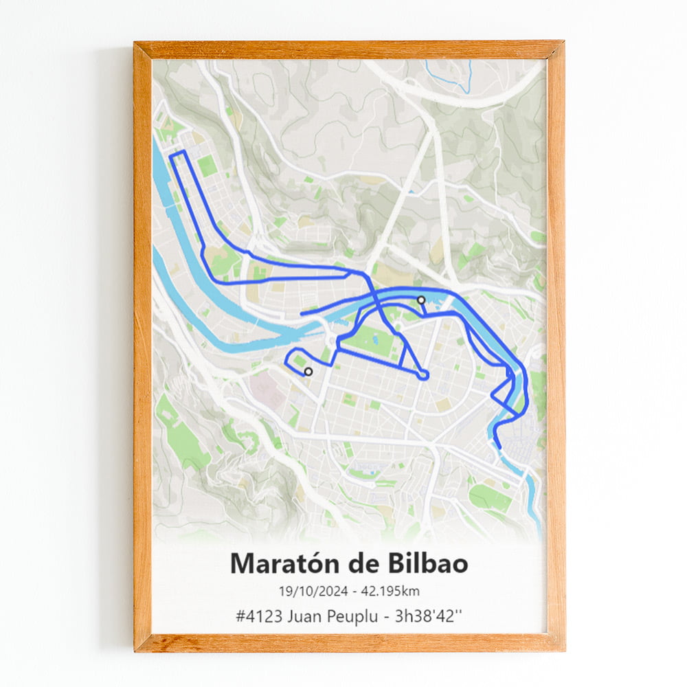Cette affiche du parcours du Marathon de Bilbao est imprimée sur du papier brillant haute qualité.Pour créer un poster personnel et unique, ajoutez votre numéro de dossard, votre nom, prénom, votre temps d'arrivée ou le texte que vous souhaitez.