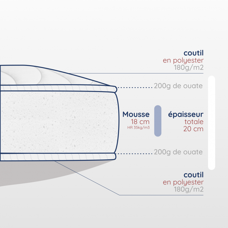 Matelas adulte en mousse haute résilience 20 cm