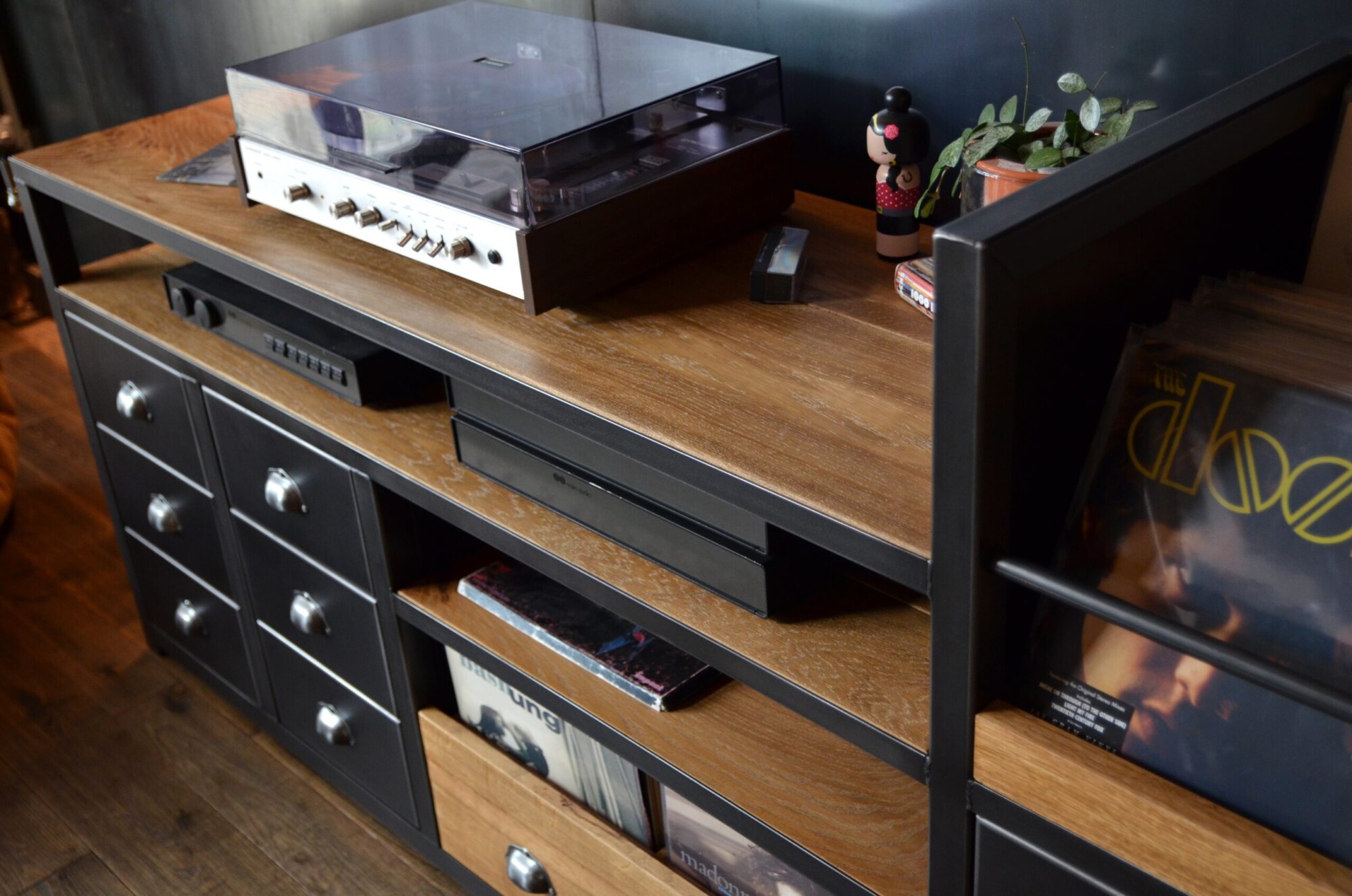 L'APOLLON n'est pas un simple meuble de rangement, c'est un socle haute fidélité conçu pour centraliser toute une vie de passion musicale. Forgée à la main en Mayenne, cette station hybride de 250 cm fusionne un bac disquaire supérieur pour vos vinyles favoris, 12 tiroirs métalliques pour un archivage dense de 1000 CD et des niches ventilées pour vos électroniques les plus pointues. Alliant la masse inerte de l'acier soudé à la noblesse du chêne massif, l'APOLLON offre une stabilité structurelle absolue, neutralisant les micro-résonances pour libérer toute la dynamique de votre platine. Un ouvrage de métier monumental, co-créé avec des collectionneurs pour des collectionneurs.