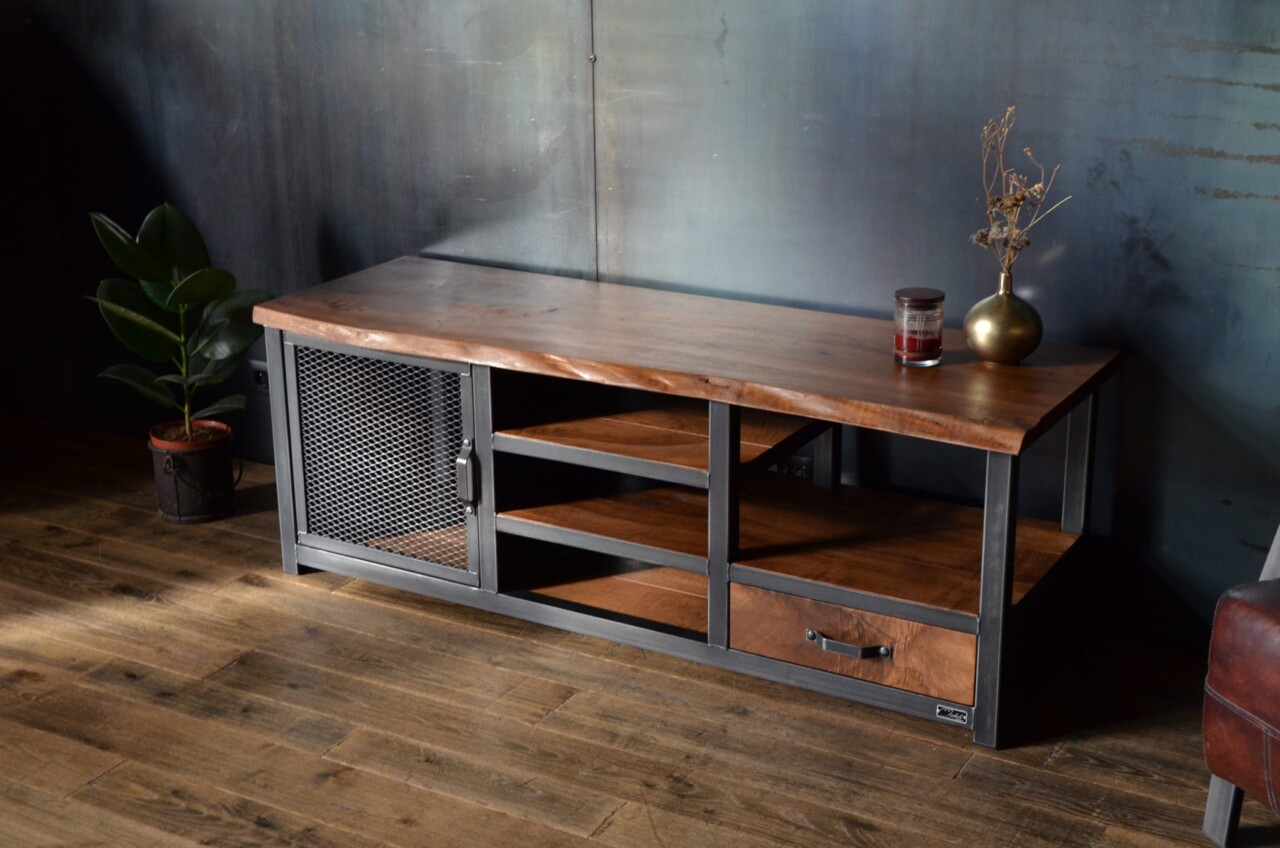 Le modèle THOR redéfinit l’esthétique multimédia en faisant de votre meuble TV une véritable œuvre de la nature. Forgée à la main en Mayenne, cette création exclusive se distingue par son plateau en noyer massif français Live Edge, dont les bords irréguliers conservent le tracé originel de l'arbre. Ce caractère sauvage contraste magnifiquement avec une structure en acier noir patiné intégrant une porte en métal déployé. Plus qu’une station multimédia, le THOR est un ouvrage de métier conçu pour durer, offrant une ventilation naturelle parfaite pour vos appareils tout en imposant une élégance brute et intemporelle dans votre salon.