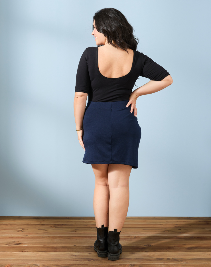 Mini Jupe froncée Laine Mérinos - Bleu Minuit - Femme | La jupe s'invite dans votre dressing de basique. Cette jupe en laine mérinos conjugue douceur naturelle et élégance affirmée.