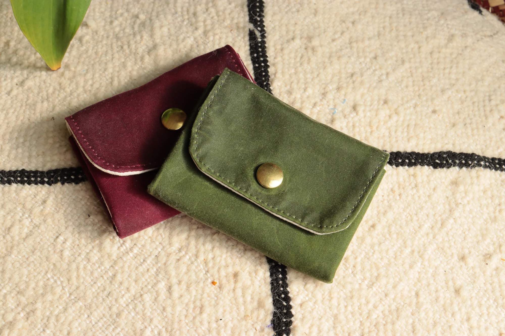Mini Portefeuille En Coton Enduit Imperméable Vert