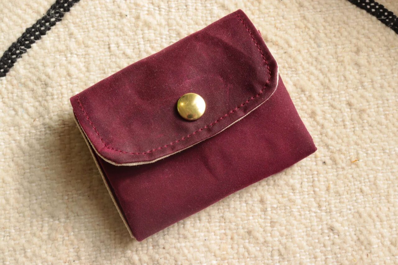 Mini Portefeuille En Coton Enduit Imperméable Lie de Vin
