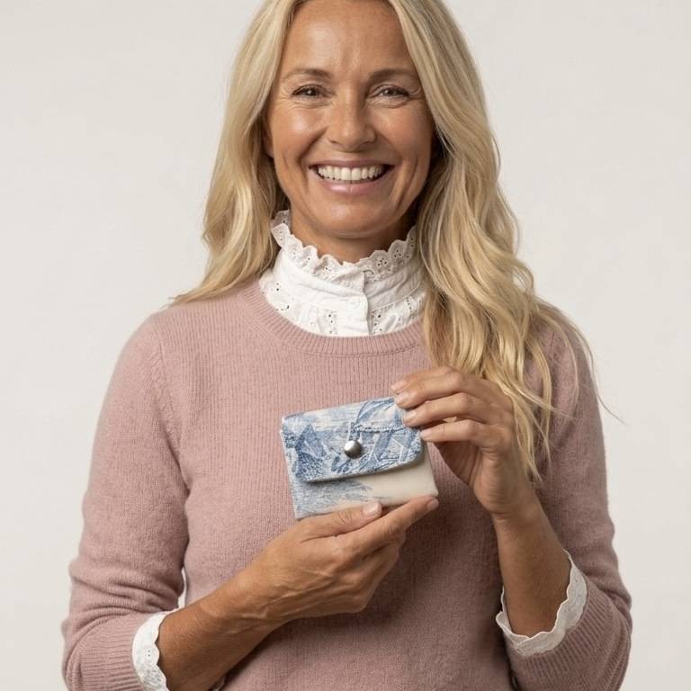 Mini Portefeuille Toile de Jouy bleue