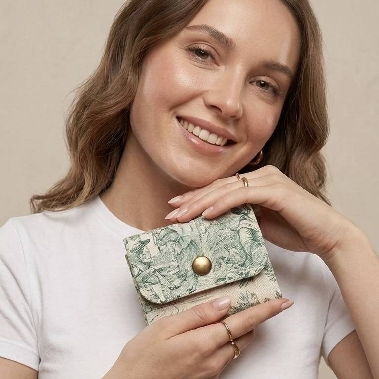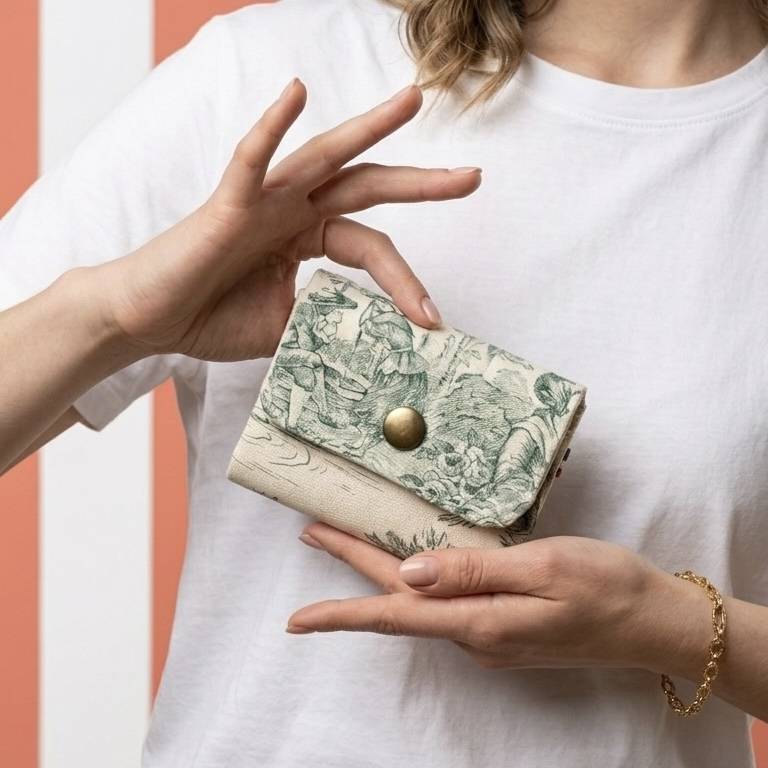 Le portefeuille qui affiche de la toile de Jouy ! Une taille idéale avec un motif iconique, notre coup de coeur pour la toile de Jouy verte en version mini ! Ce mini porte carte a été fabriqué à la main à Bordeaux