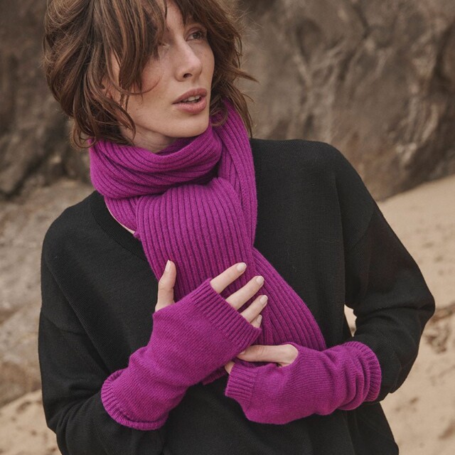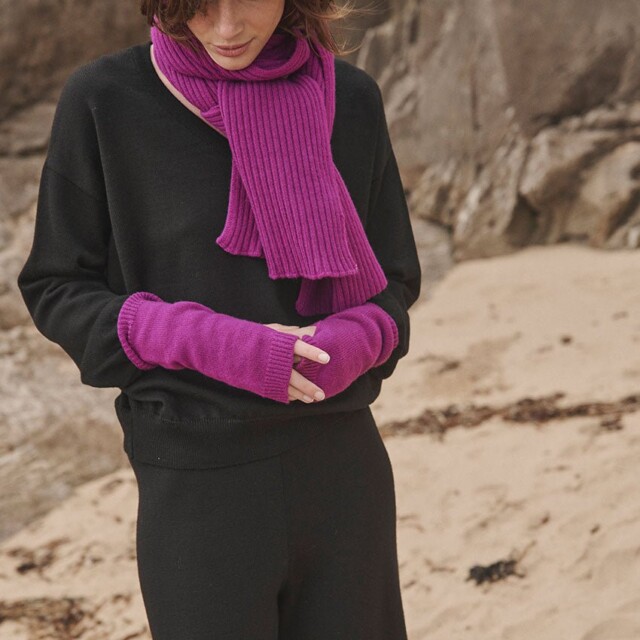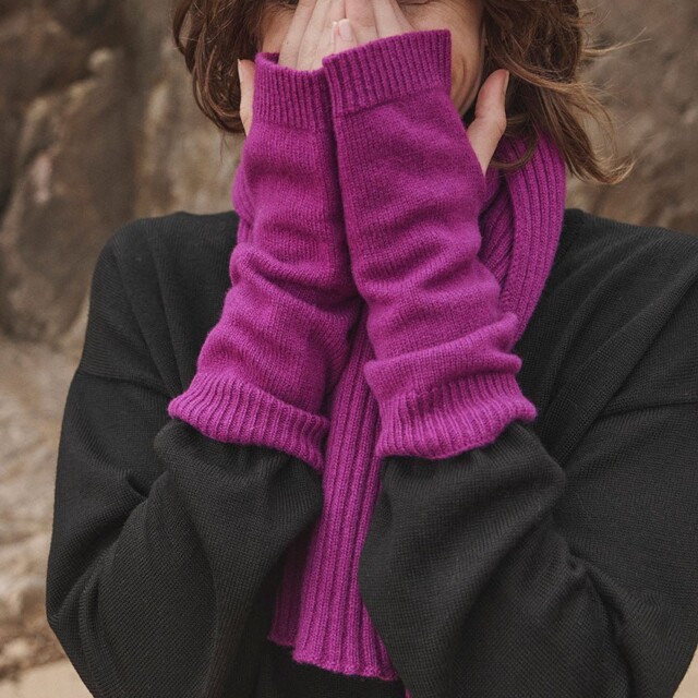 Mitaines violet digital en laine mérinos et cachemire tricotées en maille jersey