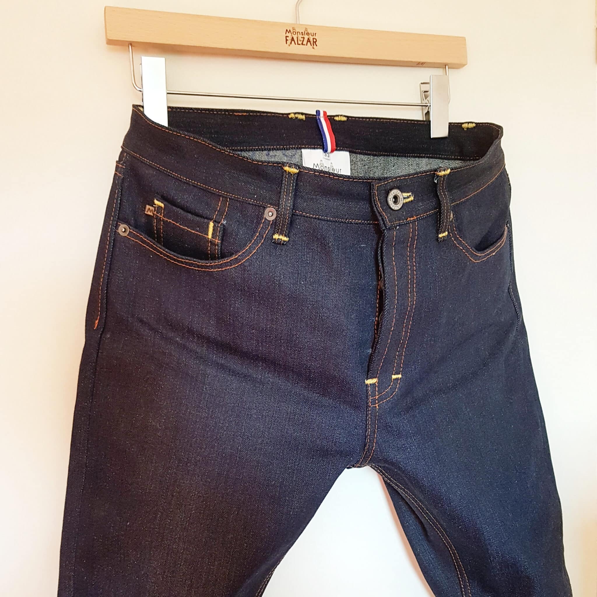 Monsieur Falzar est une marque de jeans pour les hommes. Ils sont fabriqués à la main en Normandie de façon artisanale. En vente exclusivement en ligne, vous pouvez personnaliser votre jeans et même le commander sur-mesure.