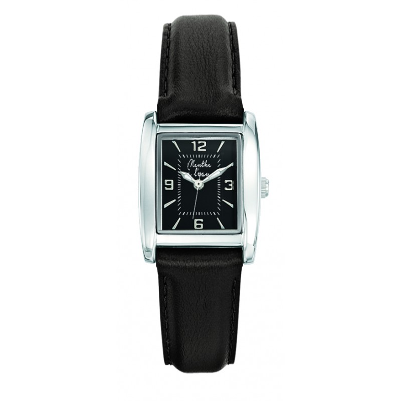Boîtier métal brillant finition chromée : 23,3 x 29,1 mm (dame) - Cadran noir avec index Montre fournie dans son écrin luxe spécifique Bracelet 16 mm cuir véritable noir Mouvement Citizen2035 / Seiko PC 21 Montre fabriquée en France à Besançon. Étanchéité : 3/ATM-Éclaboussures