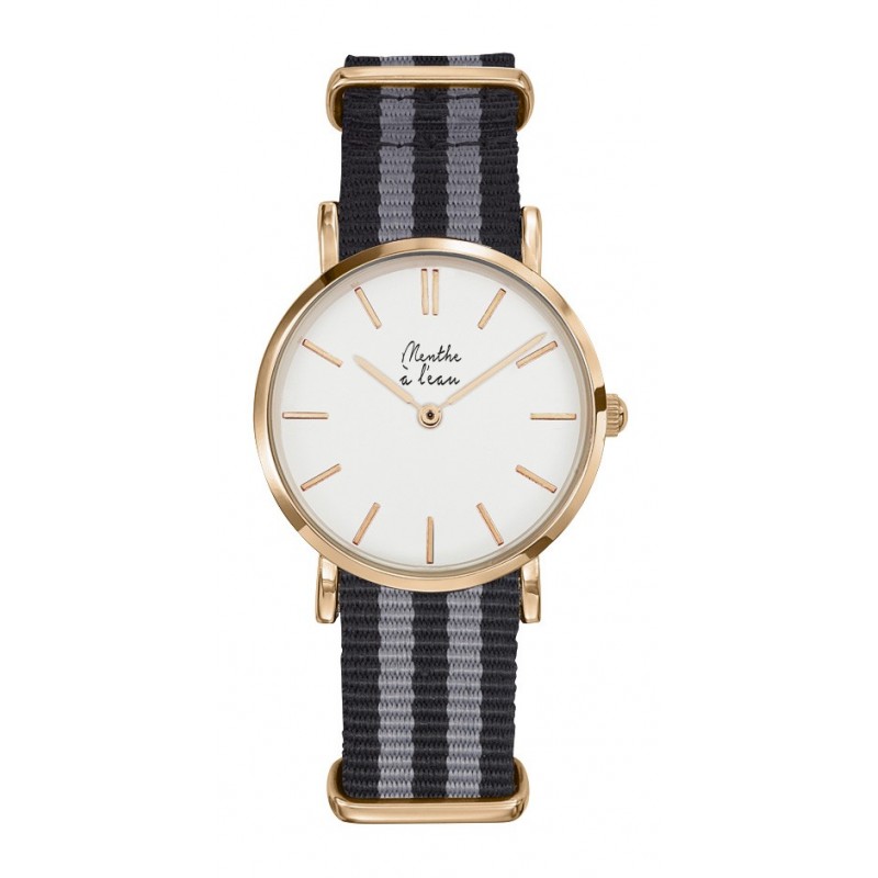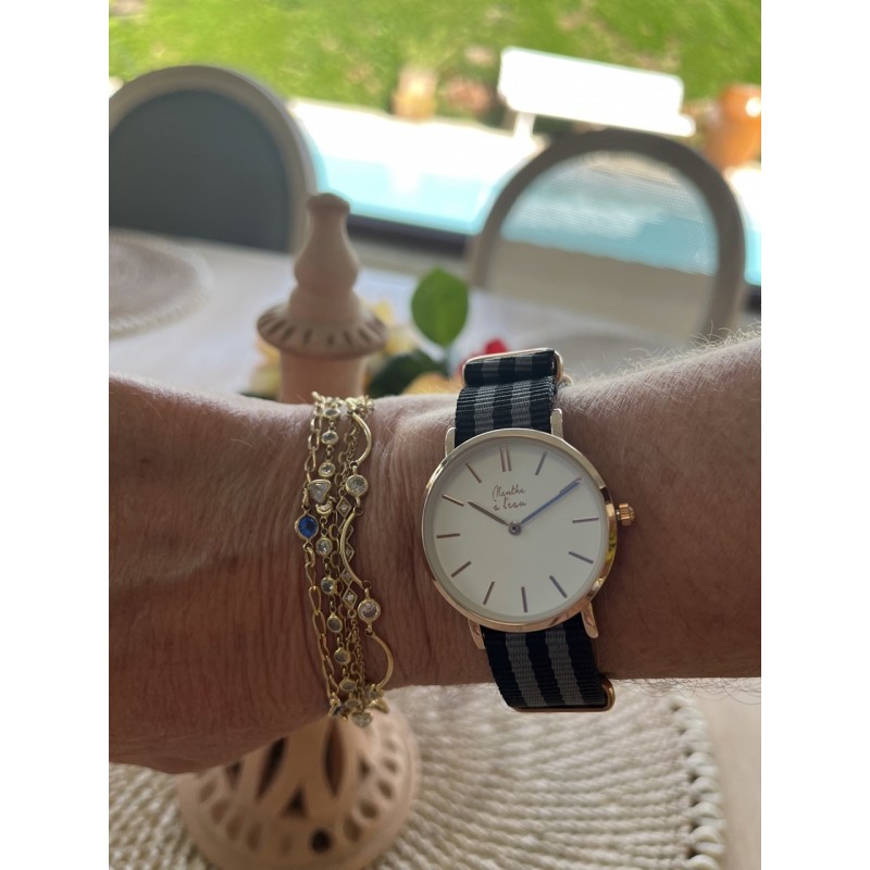 Montre Femme La Résistante bracelet nato noir/gris rose dorée