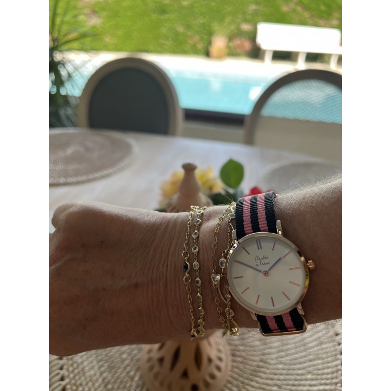 Montre Femme La Résistante bracelet nato noir/rose rose dorée