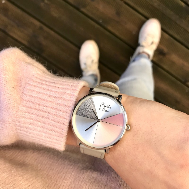 Montre Mixte L'Indécise bracelet façon cuir gris rose design F