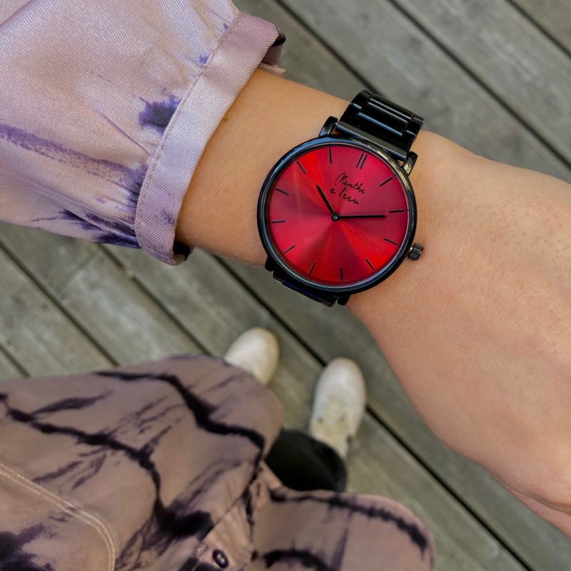 Montre Mixte L'Intemporelle noire fond rouge