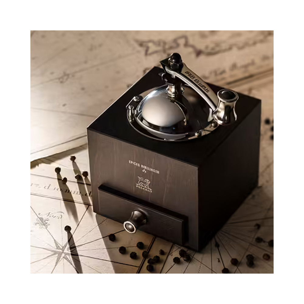 PEUGEOT Saveurs fabrique en France le moulin à poivre manuel ROELLINGER. Inspiré du moulin à café, ce moulin à poivre à manivelle, traditionnel; a été revisité par la designer Sylvie Amar, pour un design alliant modernité et tradition. Le corps du moulin est en bois.