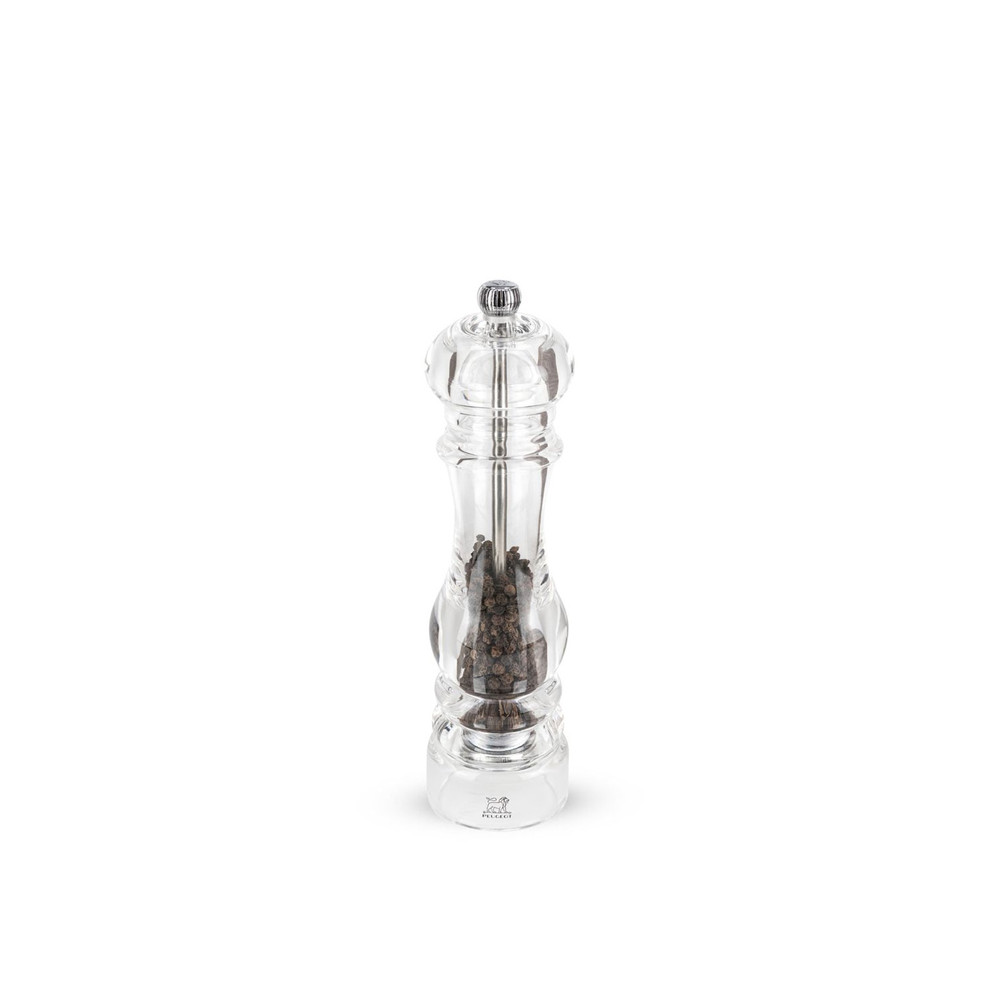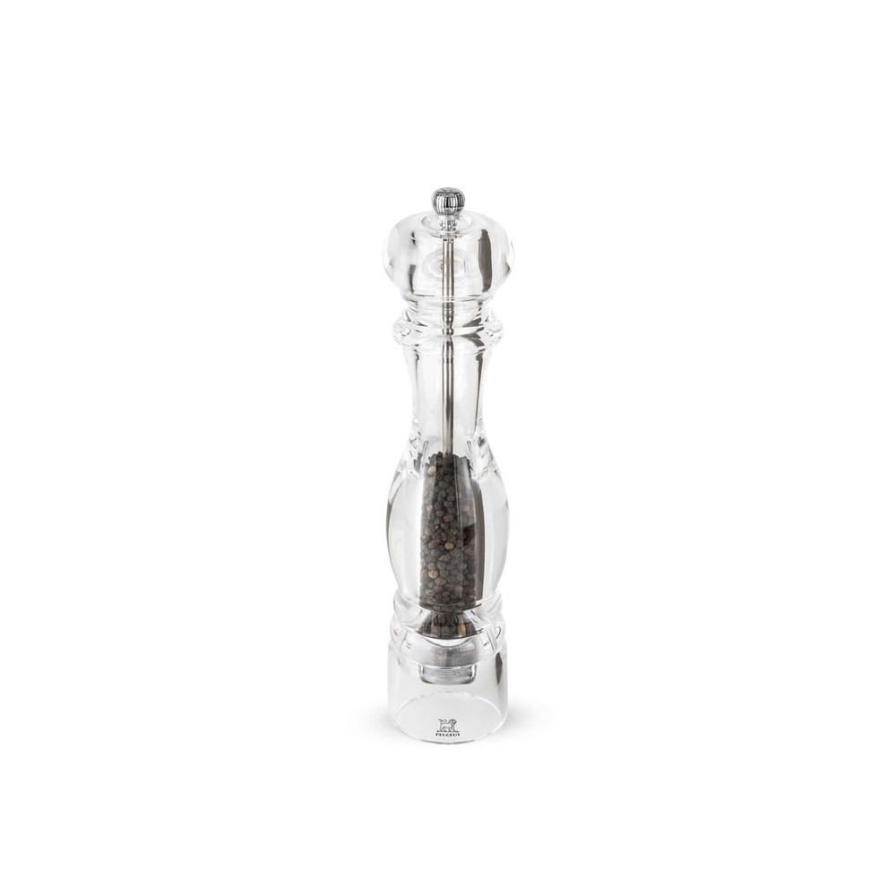 Le moulin à poivre de la collection NANCY est fabriqué en France par Peugeot Saveurs. Très ergonomique et facile d'utilisation, ce moulin a un mécanisme de mouture très apprécié par les chefs du monde entier. En acrylique, il plait beaucoup de par son élégance, mais également de par sa transparence, qui permet de voir le niveau de poivre à l'intérieur, ce qui apporte un très beau contraste avec le moulin.