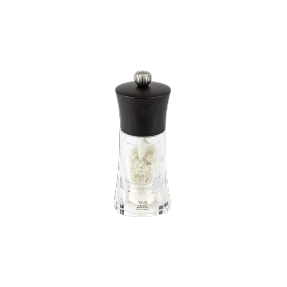 Moulin à sel HUMIDE, modèle OLERON en bois de coloris CHOCOLAT et acrylique, fabriqué en France par PEUGEOT. Le moulin Oléron de Peugeot est en acrylique transparent et en bois naturel laqué chocolat.Les dimensions des moulins sont les suivantes : - hauteur : 14cmCe moulin a la particularité de posséder un mécanisme en céramique spécifiquement prévu pour le sel humide comme le sel de Guérande.